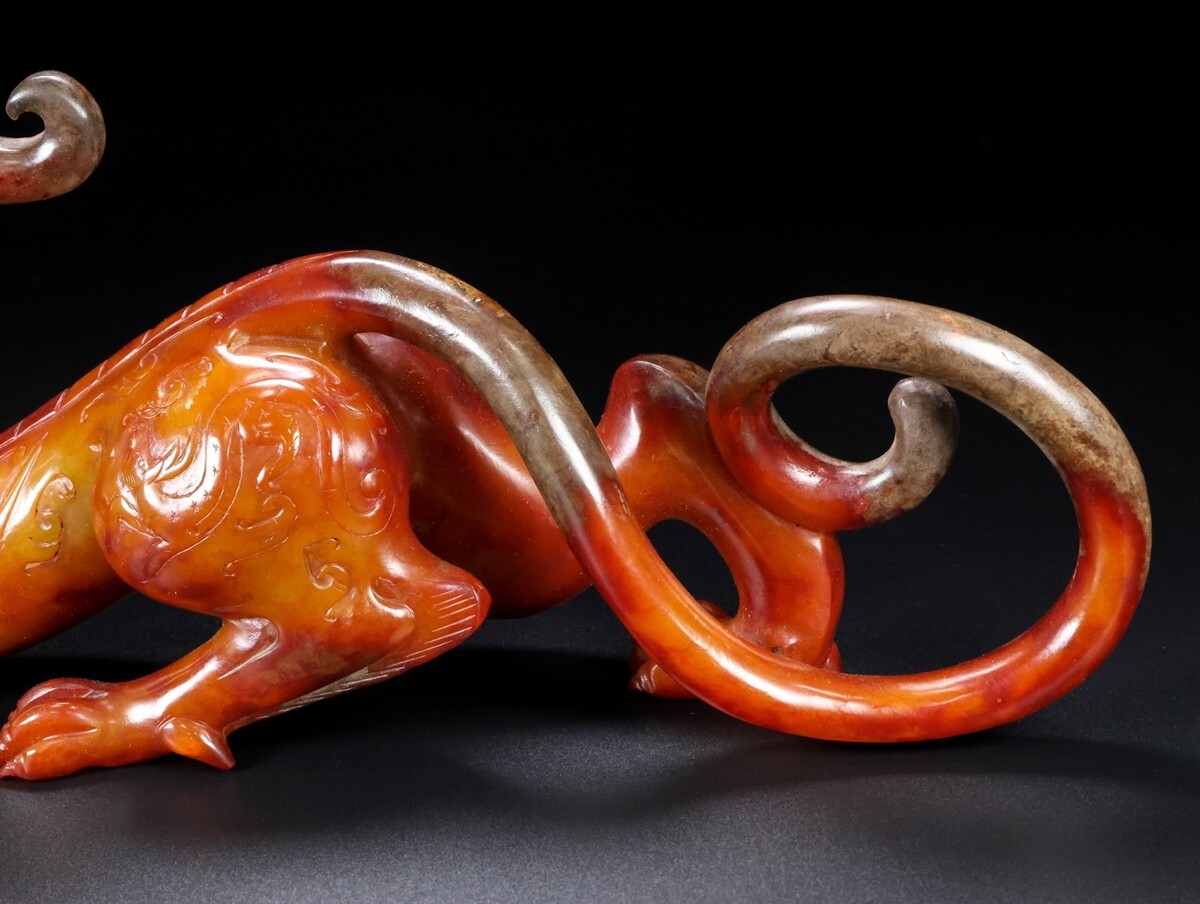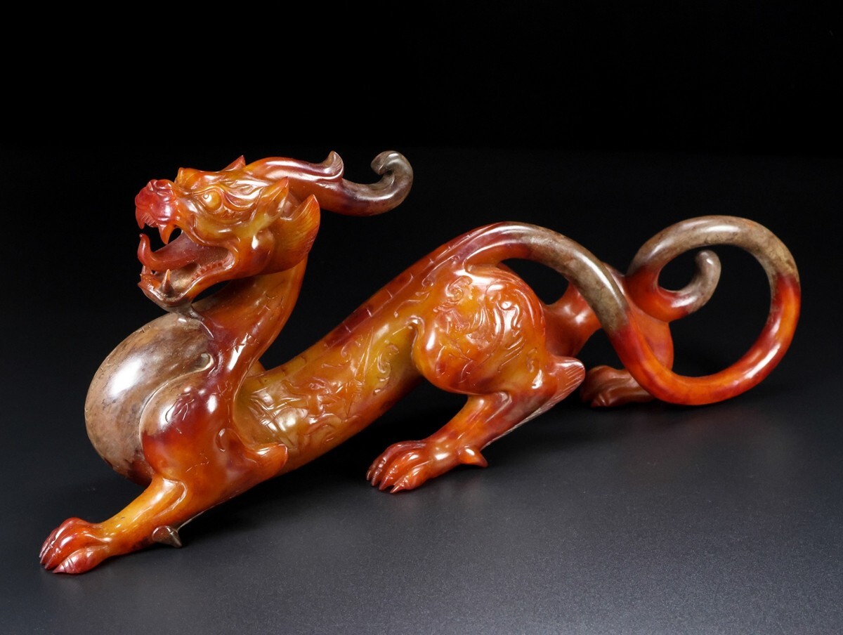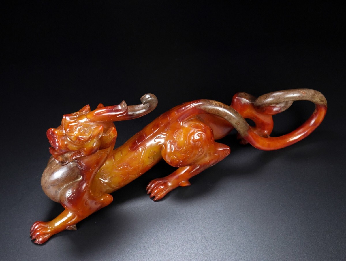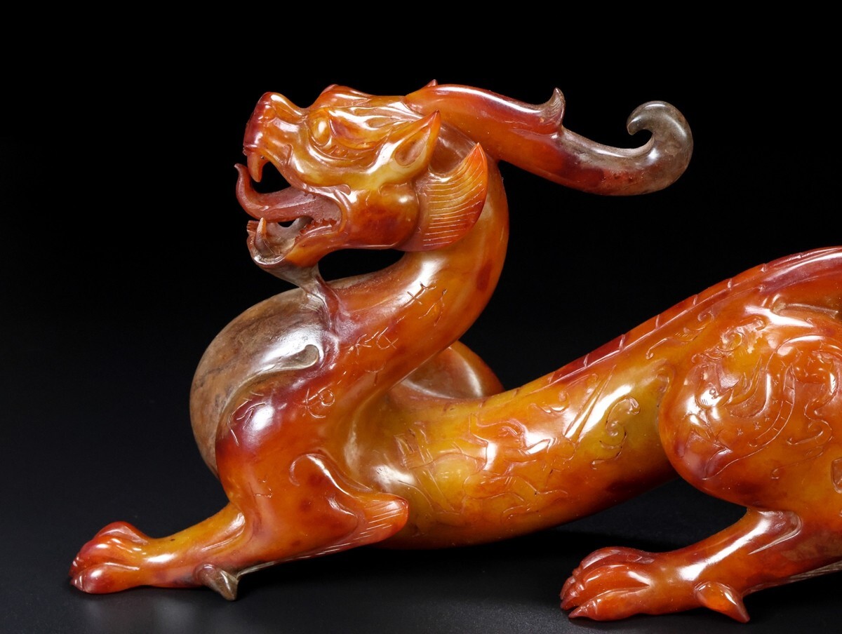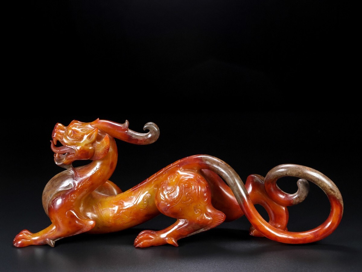 【瓏】和田玉 高古玉彫 銘文 玉龍 時代物 極細工 手彫り 置物擺件 中国古賞物 古美術 蔵出
