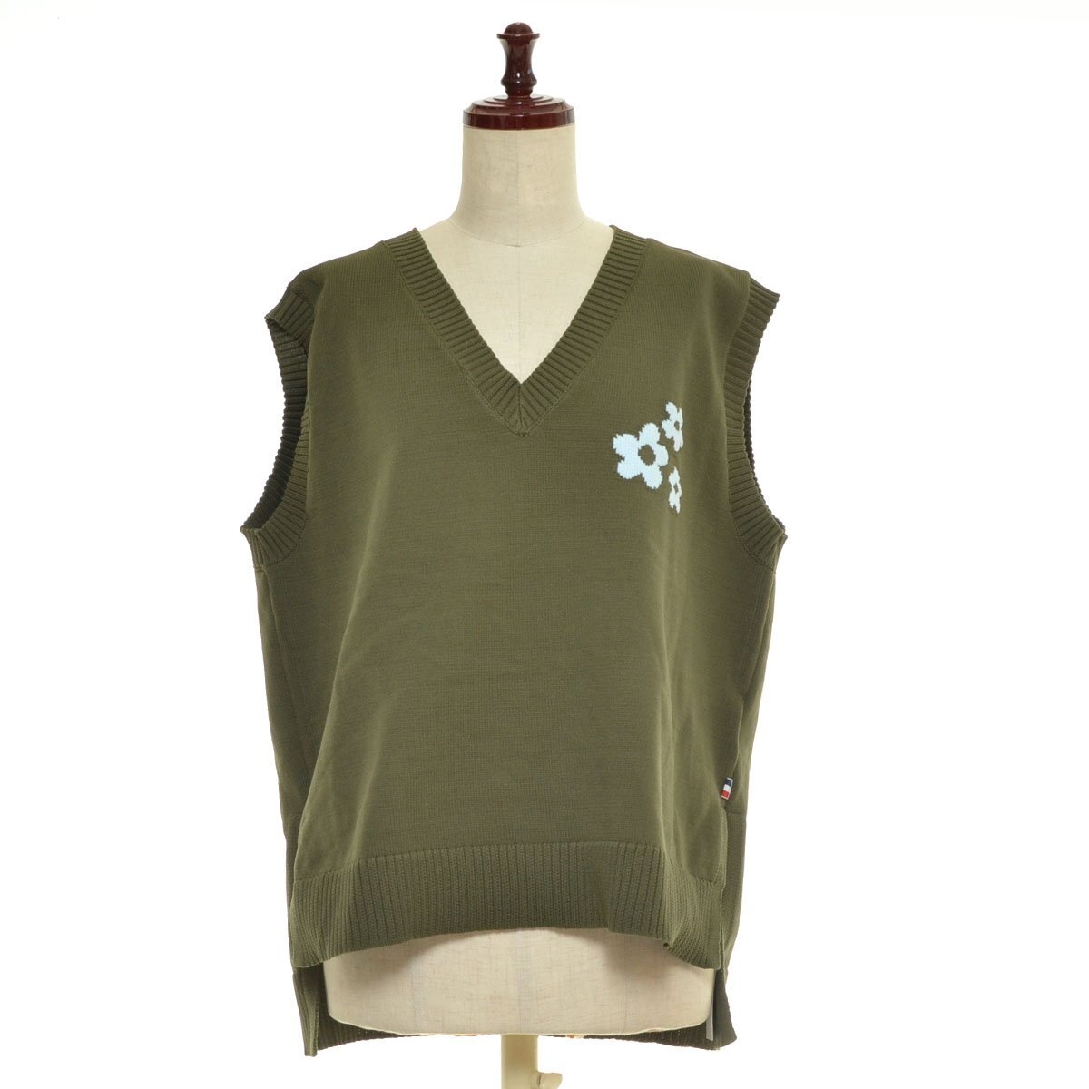 ◇560046 未使用品 PERSON'S パーソンズ ◇ベスト 花柄ニットベスト サイズL レディース カーキ グリーン