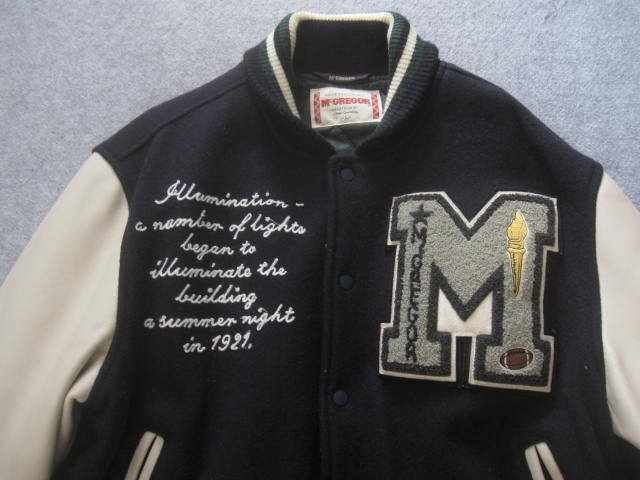 MCGREGOR マクレガー 袖革 スタジアムジャンバー/スタジャン L。ユーズドです、毛玉、汚れ、着用臭など古着なりの使用感ございます。ノークレームノーリターンノーキャンセルでお願いします。