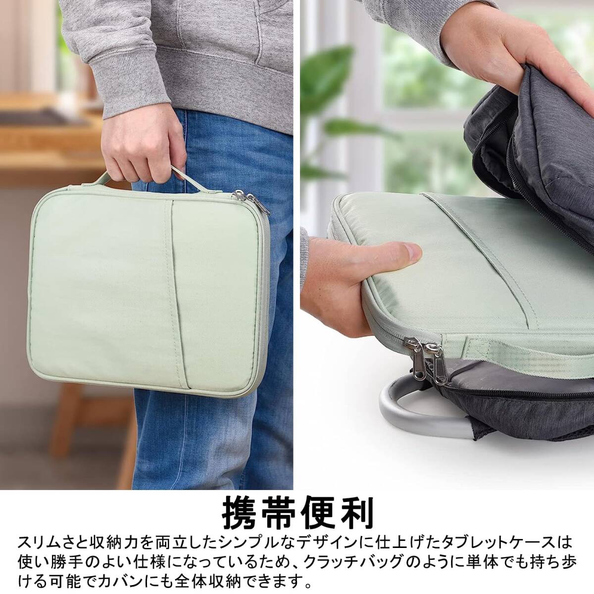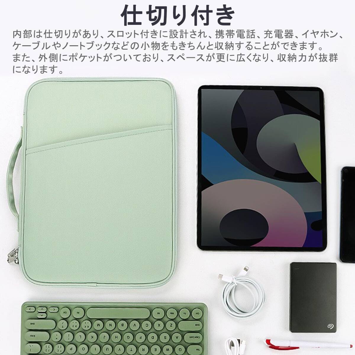 タブレット スリーブケース 9-11 インチ iPad Air 11インチ/ 10.9インチ 7 6 5 4 (2025-2020) iPad Pro 4/3/2/1世代 11/ 9.7インチ /iPad 11 10 9 8 7世代 11/10.9/10.2インチ/Pixel Tablet/Galaxy Tab/Redmi Pad/ iPlay60 Pro/70 Pro 等対応 (グリーン)
