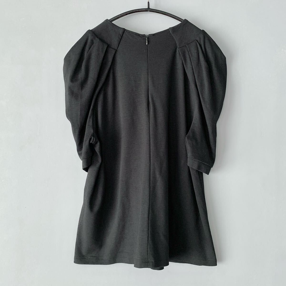 アキラナカのショート丈ブラウスです。肩から~袖にかけてタックを入れて、ここらしいデザインになっています。ジャージー素材なので気軽にカジュアルに着れる感じです。
