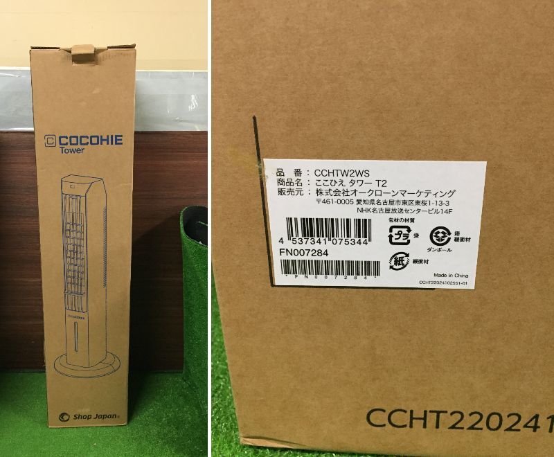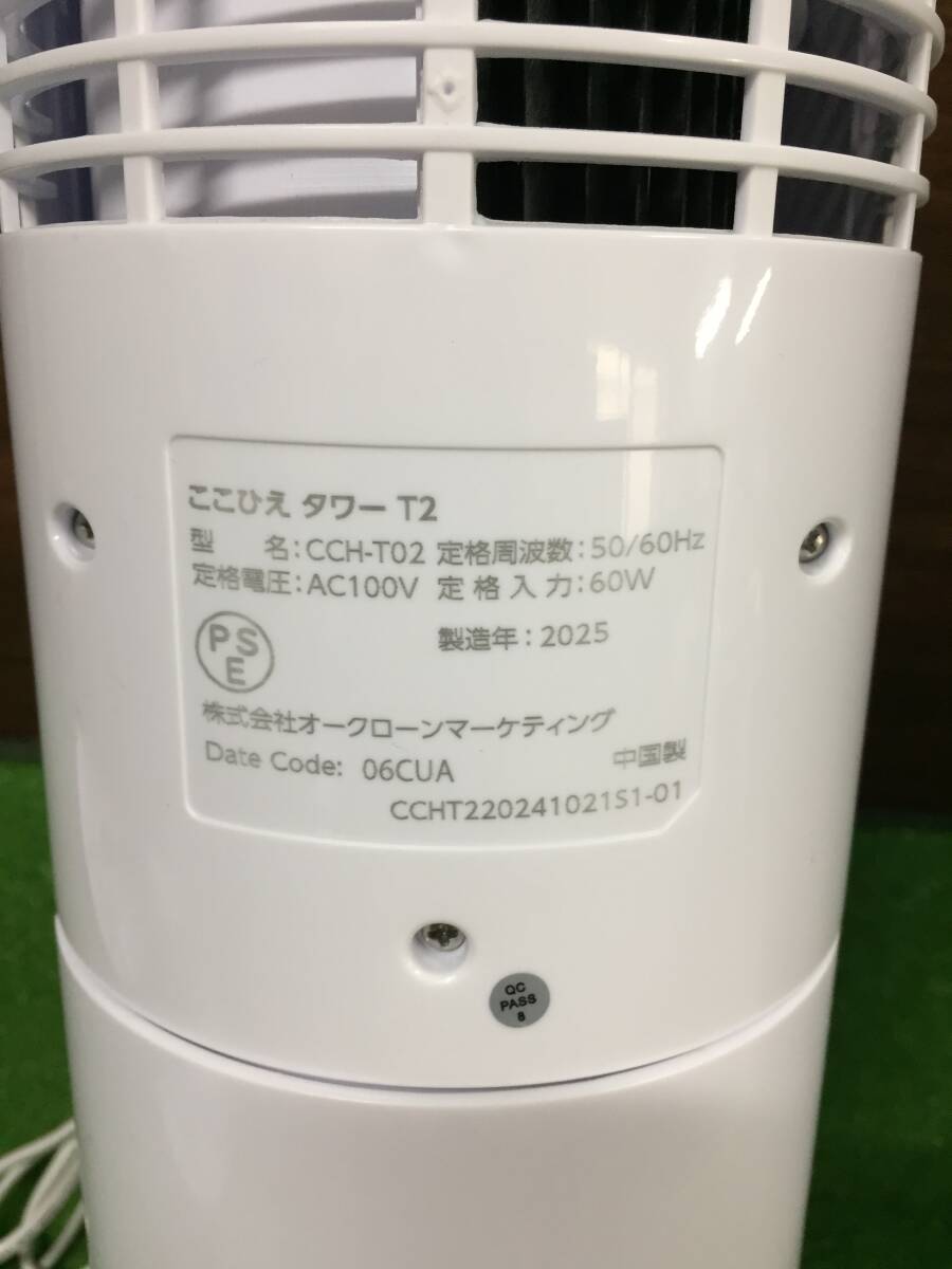オークローンマーケティング ここひえタワーT2 タワー型冷風扇 CCH-T02 ホワイト 2025年製 箱入り 空調家電 リモコン欠品 24-10