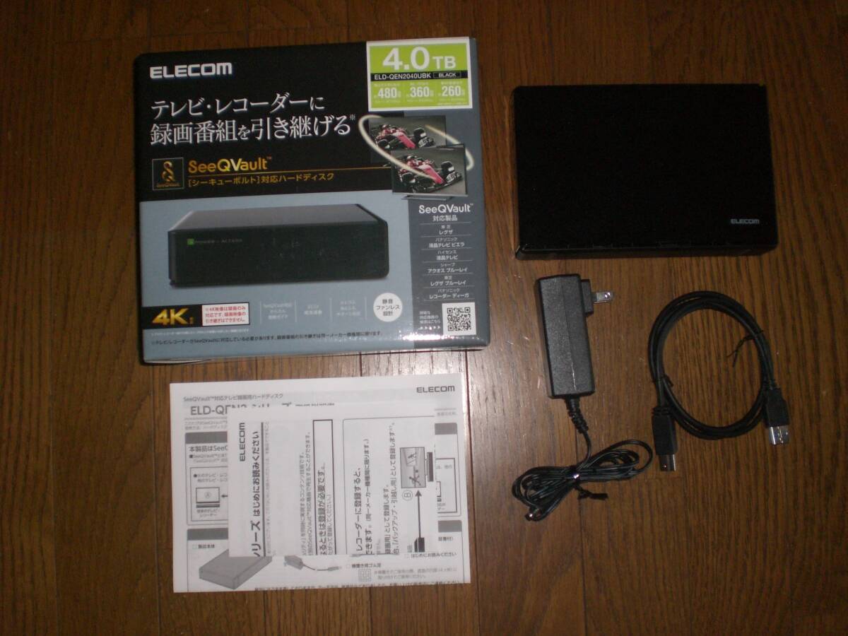ELECOM エレコム 外付HDD 4TB SeeQVault対応 ELD-QEN2040UBK  (中古)