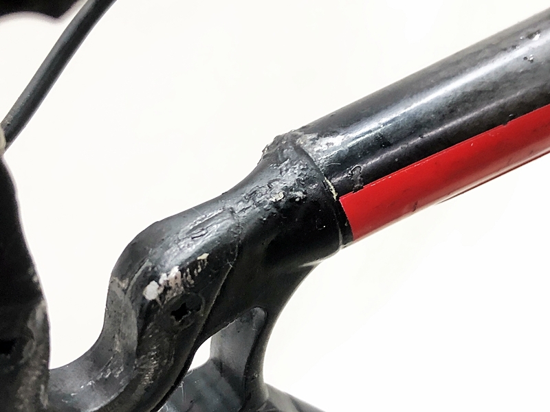 フレーム、その他外観:訳アリの理由は、右フレームエンドにカーボン地まで達している可能性がある塗装ハゲ、クラックの疑いがある補修跡がありますため、訳アリの現状お渡し車体となります。