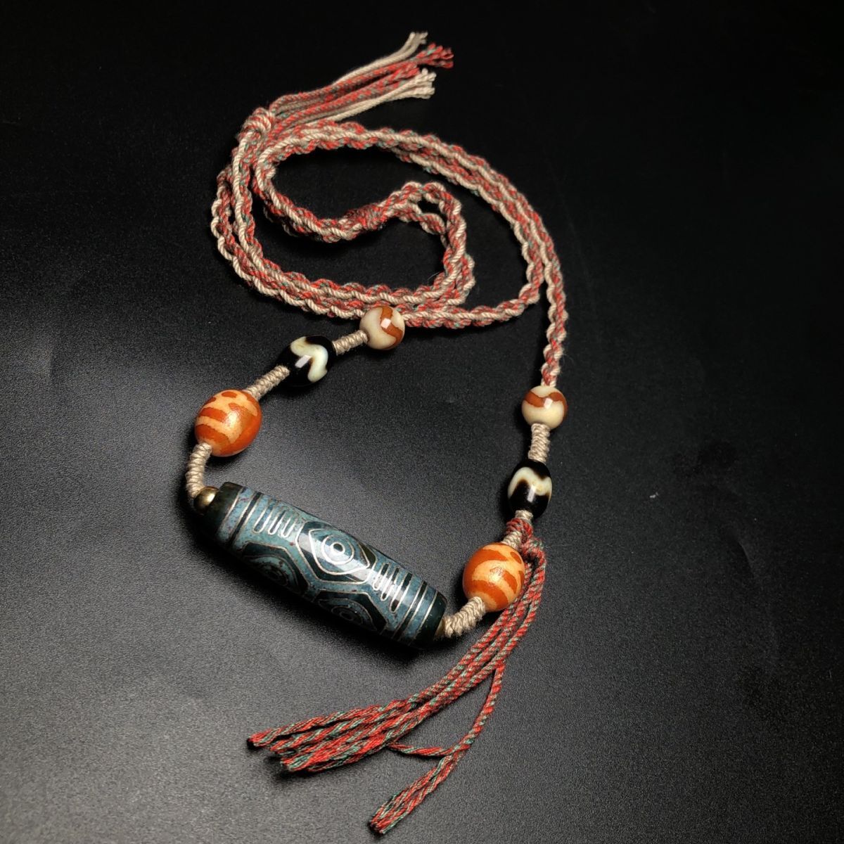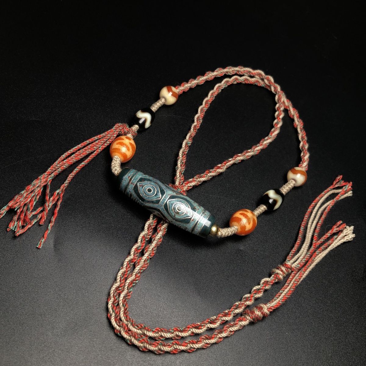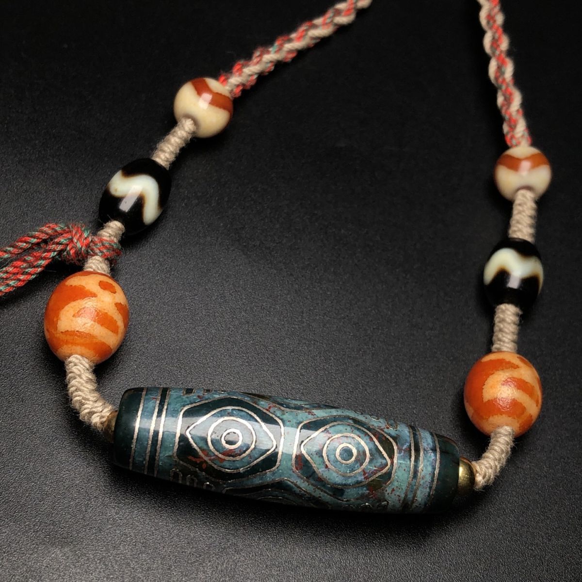 永し 清時代 天然瑪瑙 藏傳 嵌銀絲 龍眼 六眼天珠 項鏈 極細工 置物擺件 古美術品 時代物 古董品 収集 旧家蔵出 中国唐物 A265