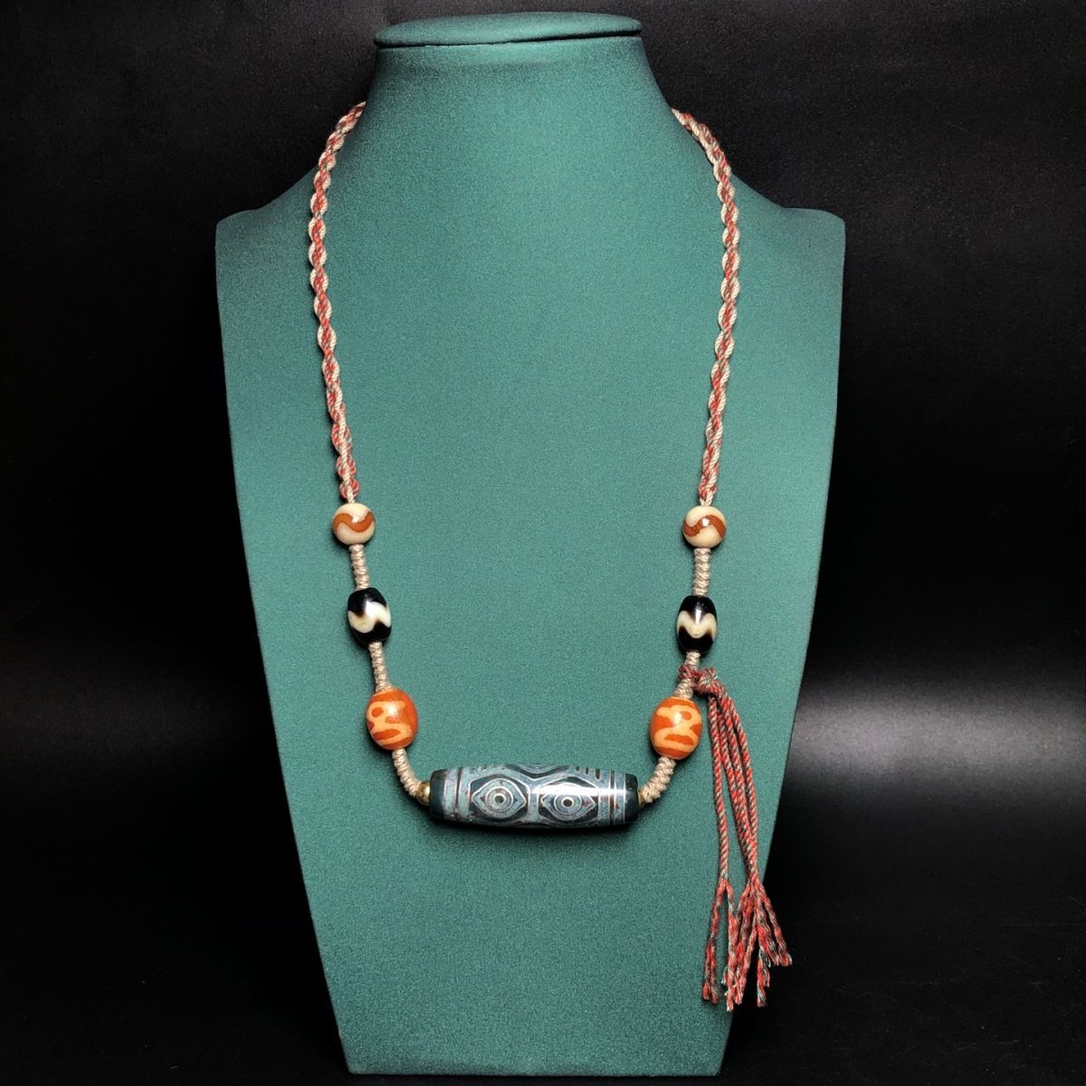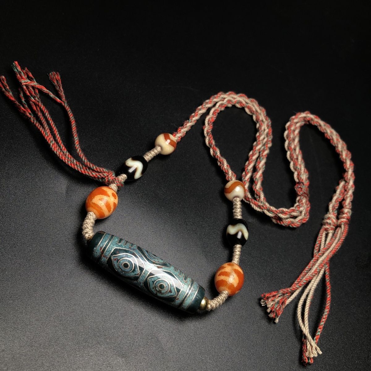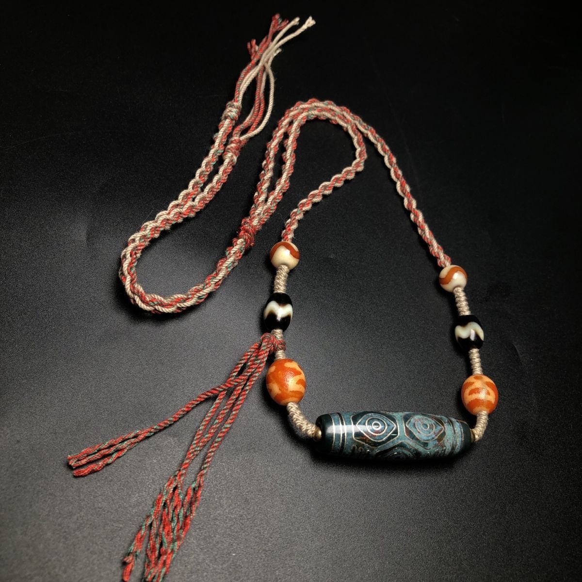 永し 清時代 天然瑪瑙 藏傳 嵌銀絲 龍眼 六眼天珠 項鏈 極細工 置物擺件 古美術品 時代物 古董品 収集 旧家蔵出 中国唐物 A265