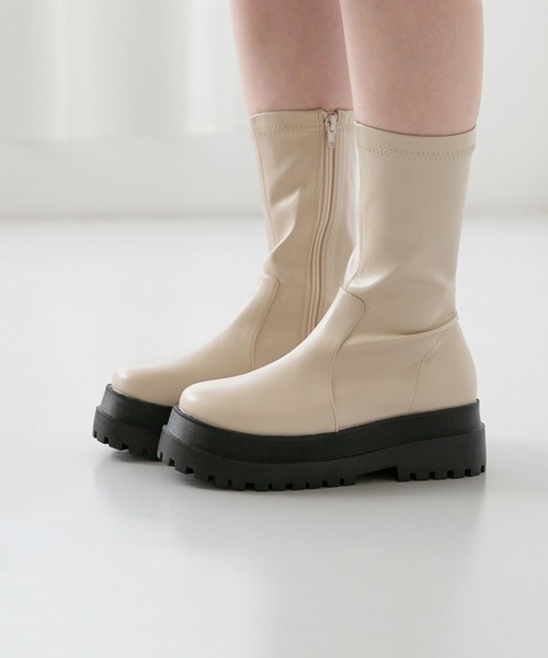 参考商品名:ストレッチ 厚底 ミドルブーツ