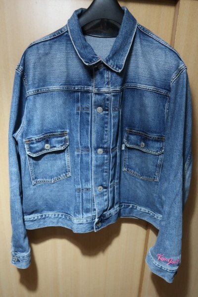 GU KIM JONES セカンド デニムジャケット Lサイズです、肩幅約50.5cm 着丈約60cm 身幅約58cm 袖丈約61cmです、ダメージ加工がしてある商品です、使用感もあまりなく良い状態です、発送はレターパックプラスのみになります。