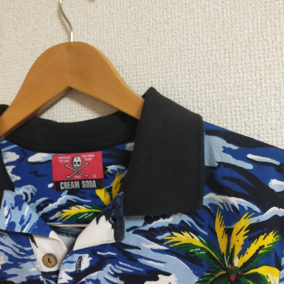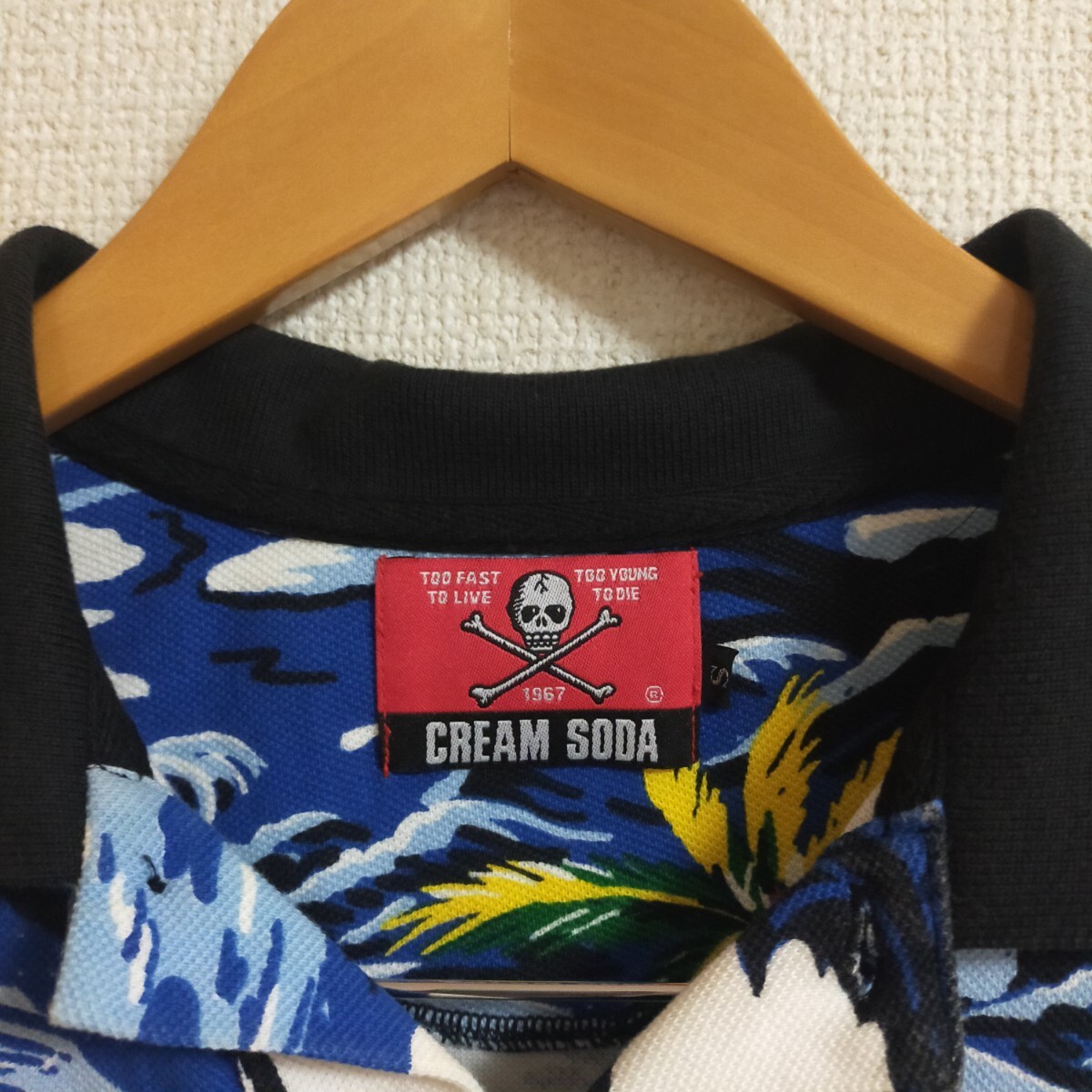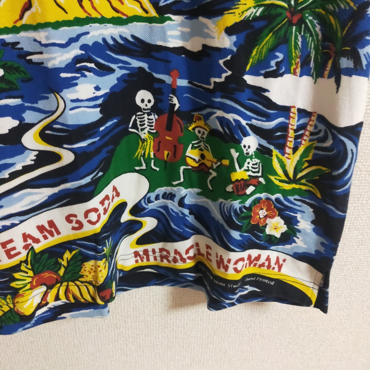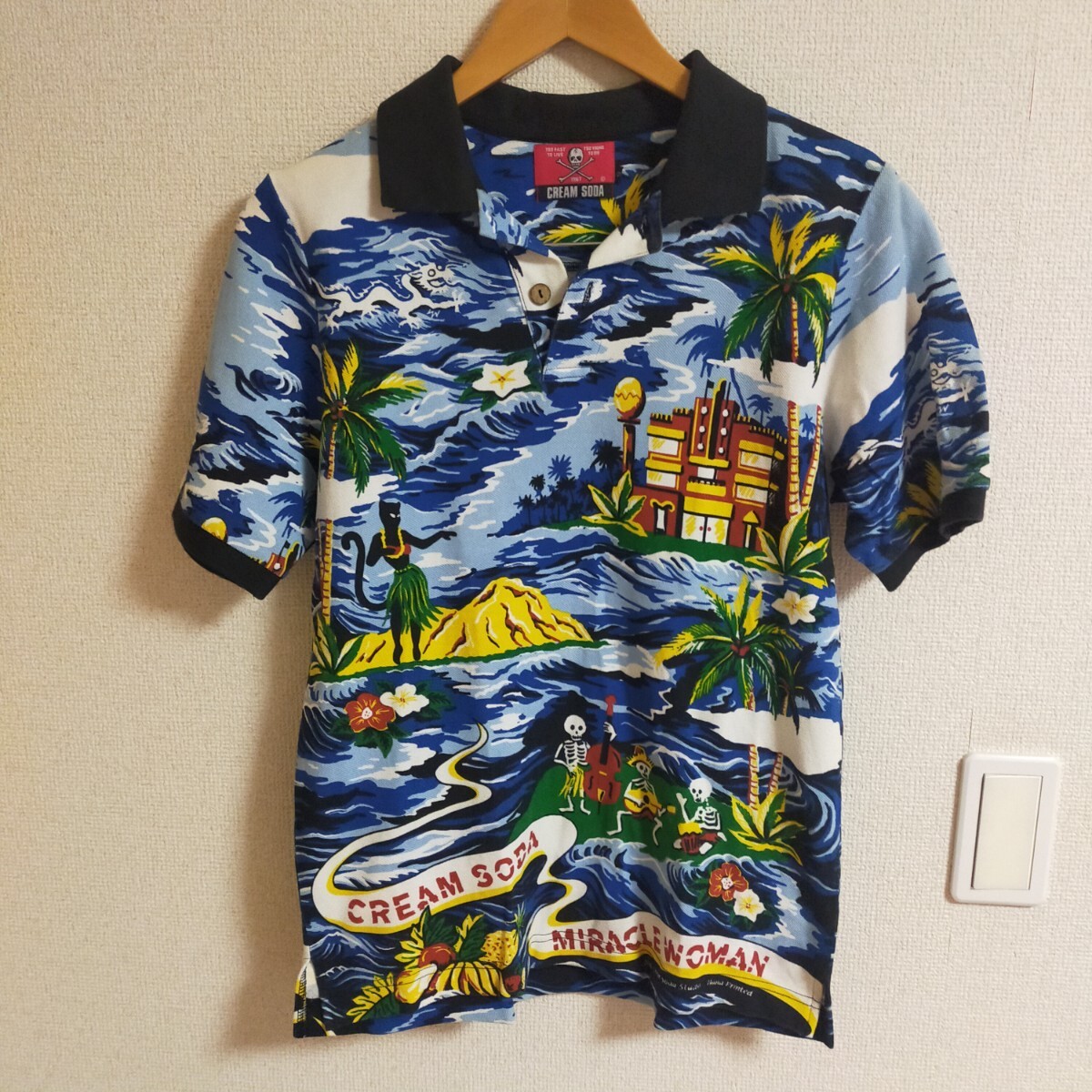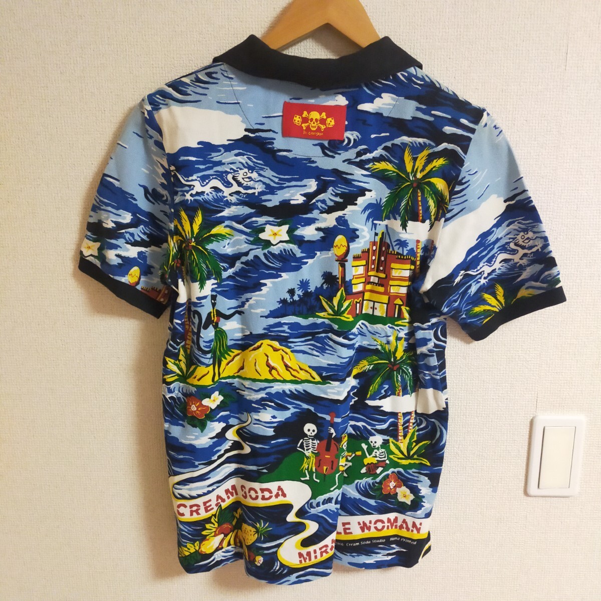 | CREAM SODA クリームソーダ 総柄 ポロシャツ 半袖 スカル ドクロ アロハ ハワイアン S マルチカラー | |
