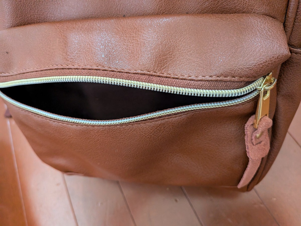 口金入りで大きく開きますので、物の出し入れがしやすいです。外側は前にファスナー付きポケット、両サイドにもポケットあります、内側には背中側にスマホが入るほどのポケット2つあります。
