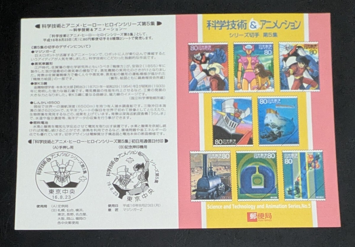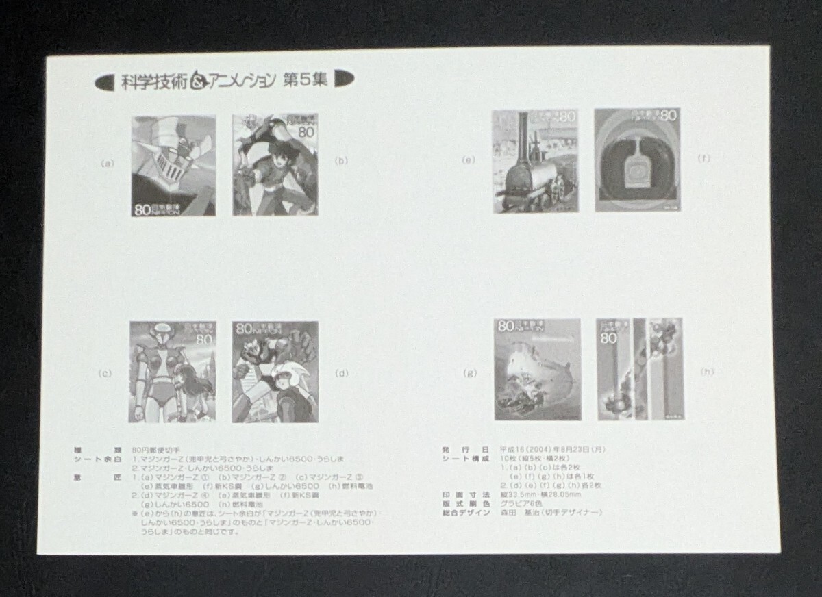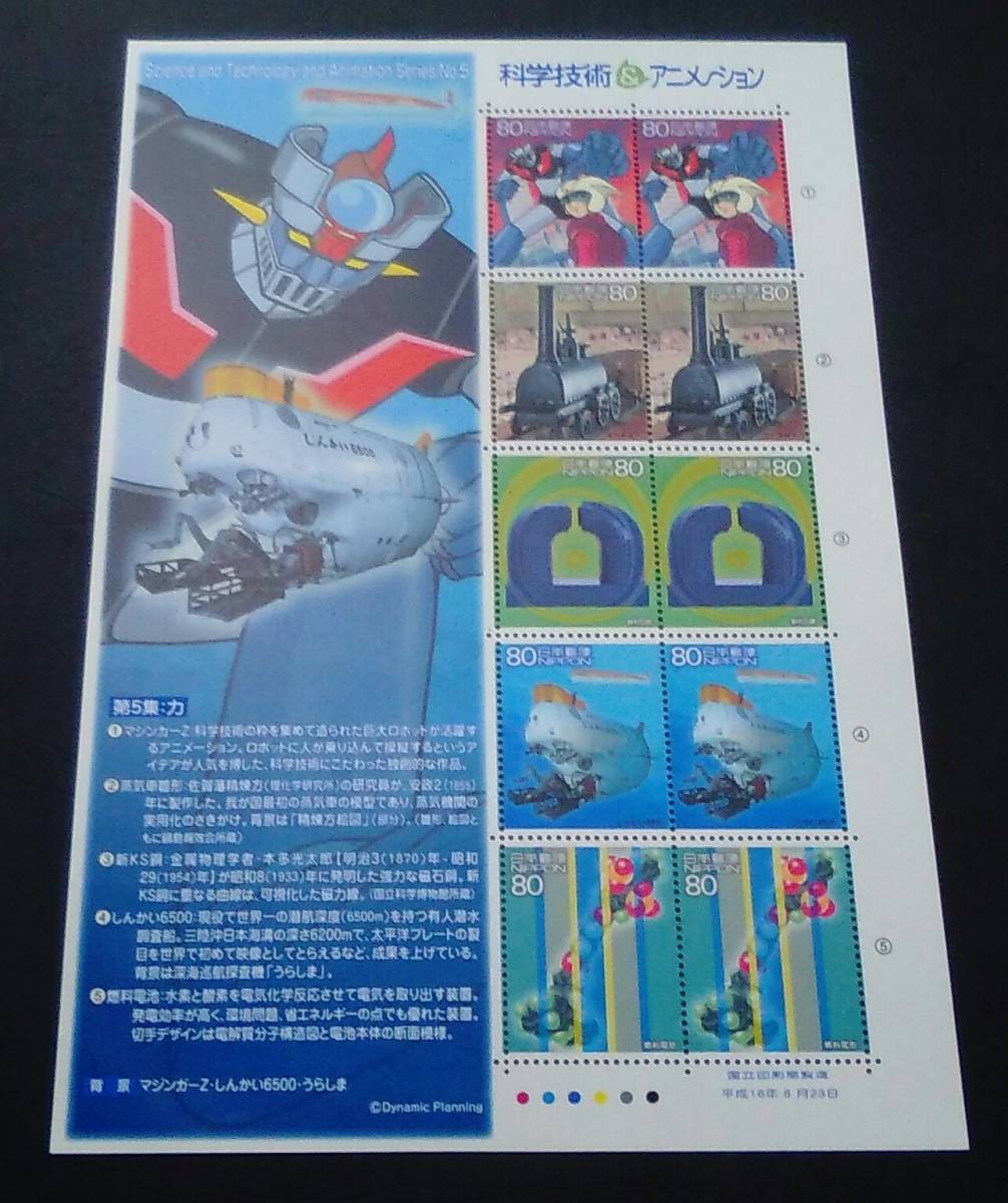 2004年・記念切手-科学技術とアニメ・ヒーロー・ヒロインシリーズ第5集(解説書付)シート(カ・マジンガーZ1)