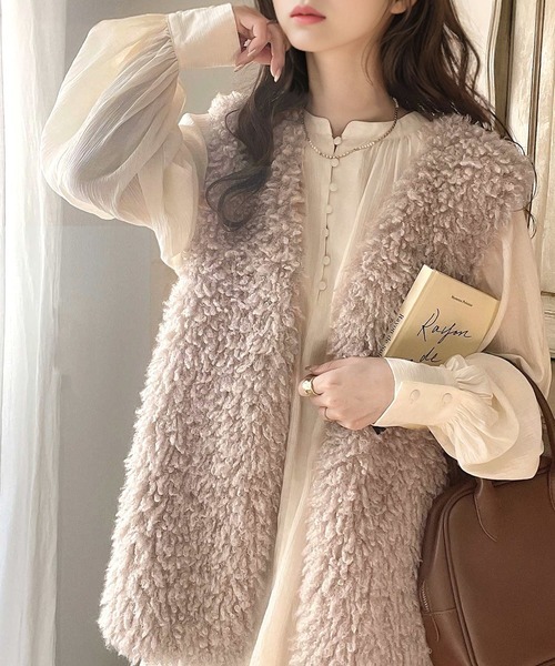参考商品名:パッと目を惹くコーデの主役。こなれ感間違いなしのボリュームプードルファーベスト