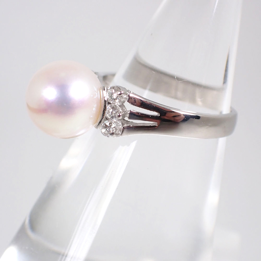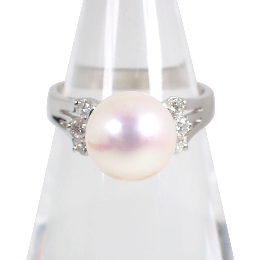 【中古】 Pt900/アコヤ真珠/8.7mm/ダイヤモンド/リング /J49-3