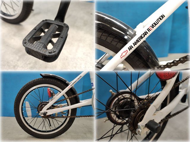 シボレー 16インチ折りたたみ自転車 を出品いたします。 ■特徴■ シボレーのロゴマークがおしゃれな 折りたたみ自転車。 気軽に車のトランクに詰め込める 変速なしの軽量型です。 多少のスレなどはありますが、 大きな傷みはなく状態良好です。 専門スタッフにより整備済です。 写真に写っているものが全てのセット品です 発送はアート家財おまかせ便でお送りします。 折りたたみ状態での引渡しとなります。 格安出品いたしますのでこの機会をお見逃しなく! |