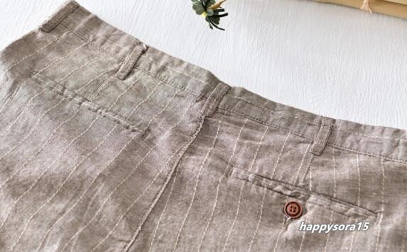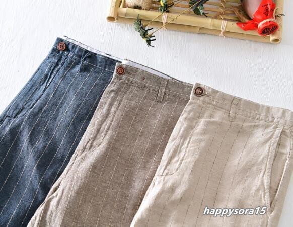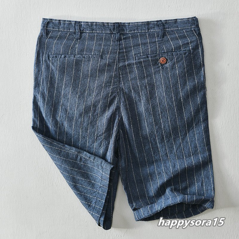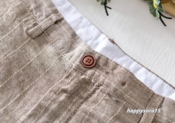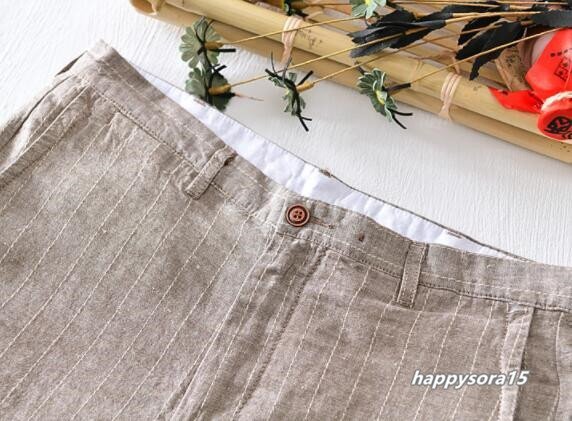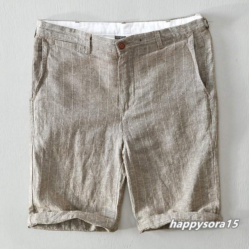 ショートパンツ メンズ ハーフパンツ  リネンパンツ 綿麻 ショーツ  短パン ストライプ柄 薄手 着心地抜群 コーヒー 32