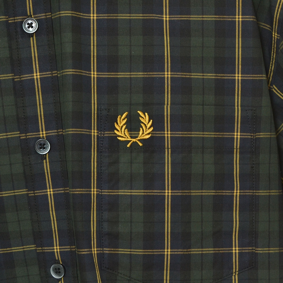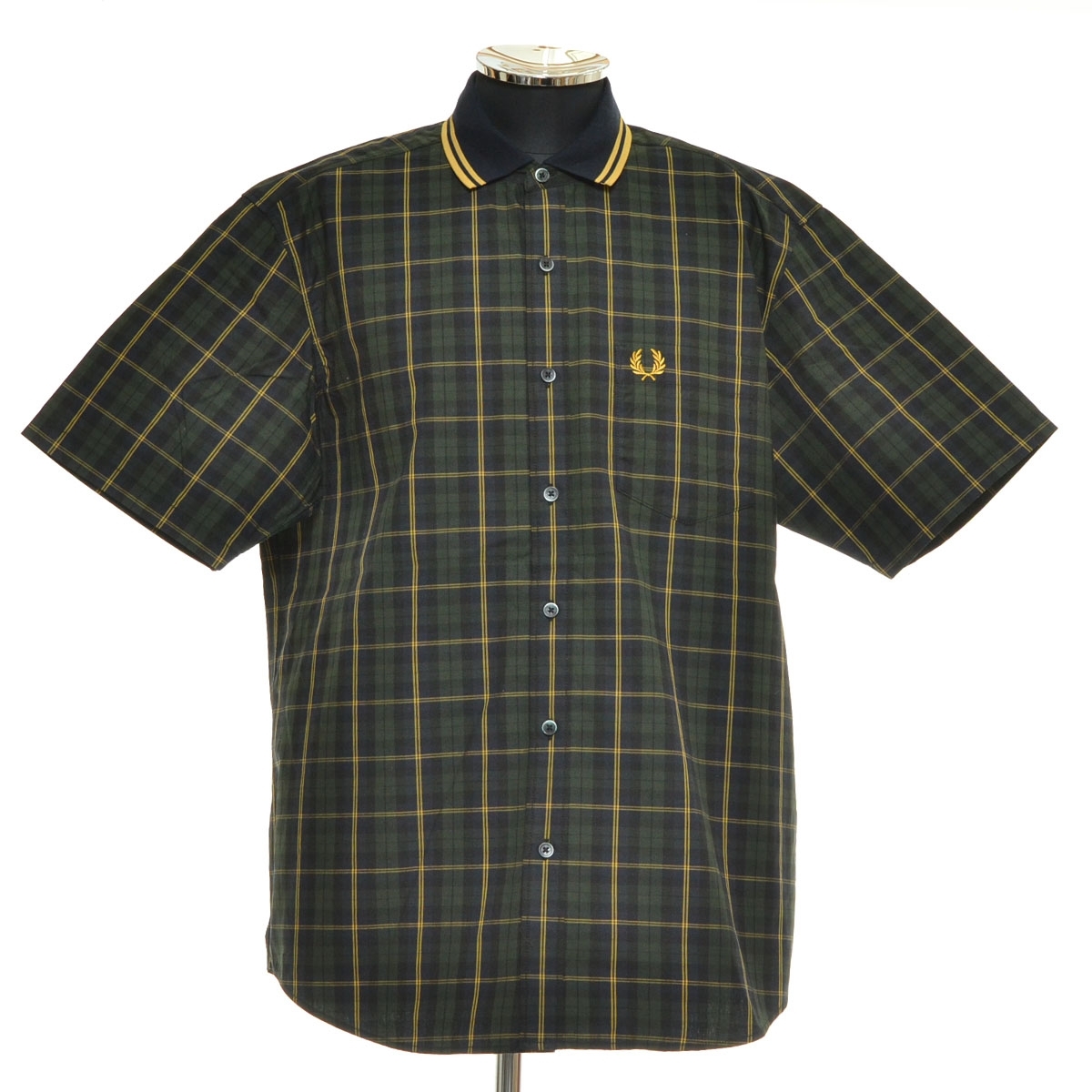 ●559952 未使用品 FRED PERRY フレッドペリー 半袖 シャツ ●25SS BEAMS別注 タータンチェックシャツ FZ4627 サイズM メンズ グリーン
