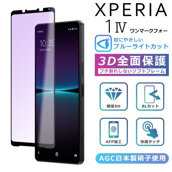 <ブルーライトカット>Xperia1 IV フィルム 3D 全面保護 Xperia 1 IV SO-51C SOG06 A201SO ガラスフィルム 黒縁 強化ガラス 液晶保護