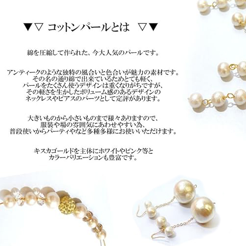 18mm・16mm・12mm・10mmの大きさの異なるコットンパールが