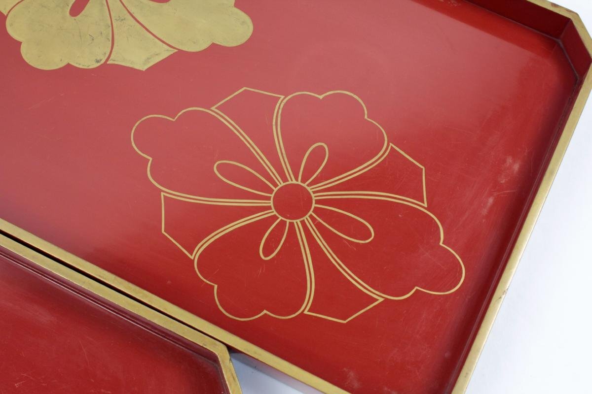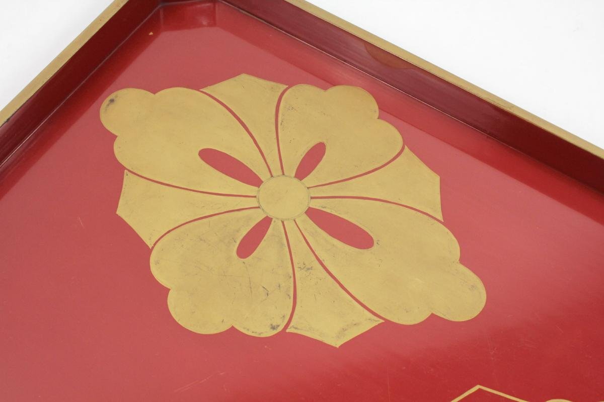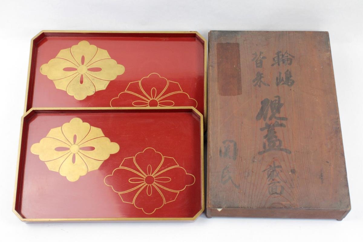 | ▼商品名 | [蔵出し] 輪島 背朱 硯蓋 関氏 金蒔絵 家紋入り 剣花菱 共箱付き 骨董 |