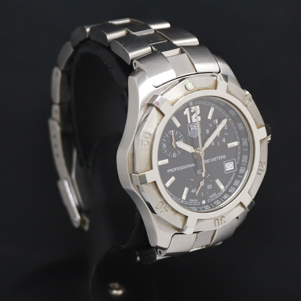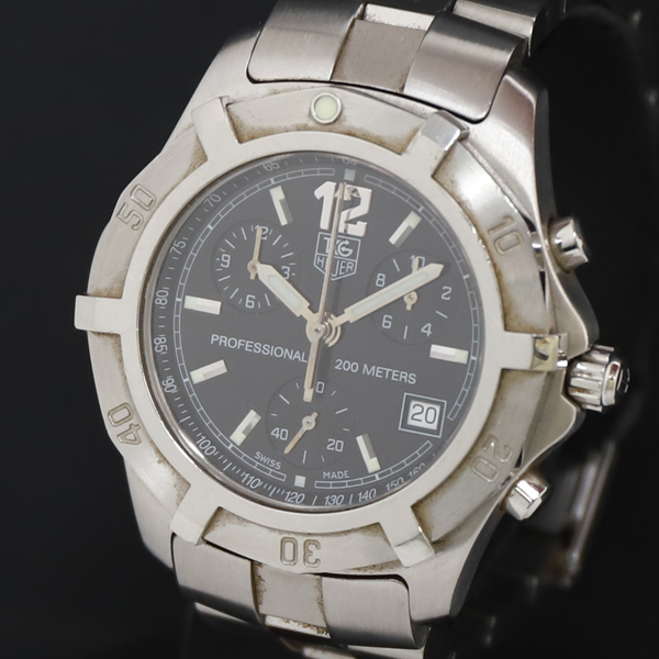 1円 稼働 QZ タグホイヤー エクスクルーシブ 200M CN1110 黒文字盤 クロノ デイト メンズ腕時計 5531400 8DIT KRK