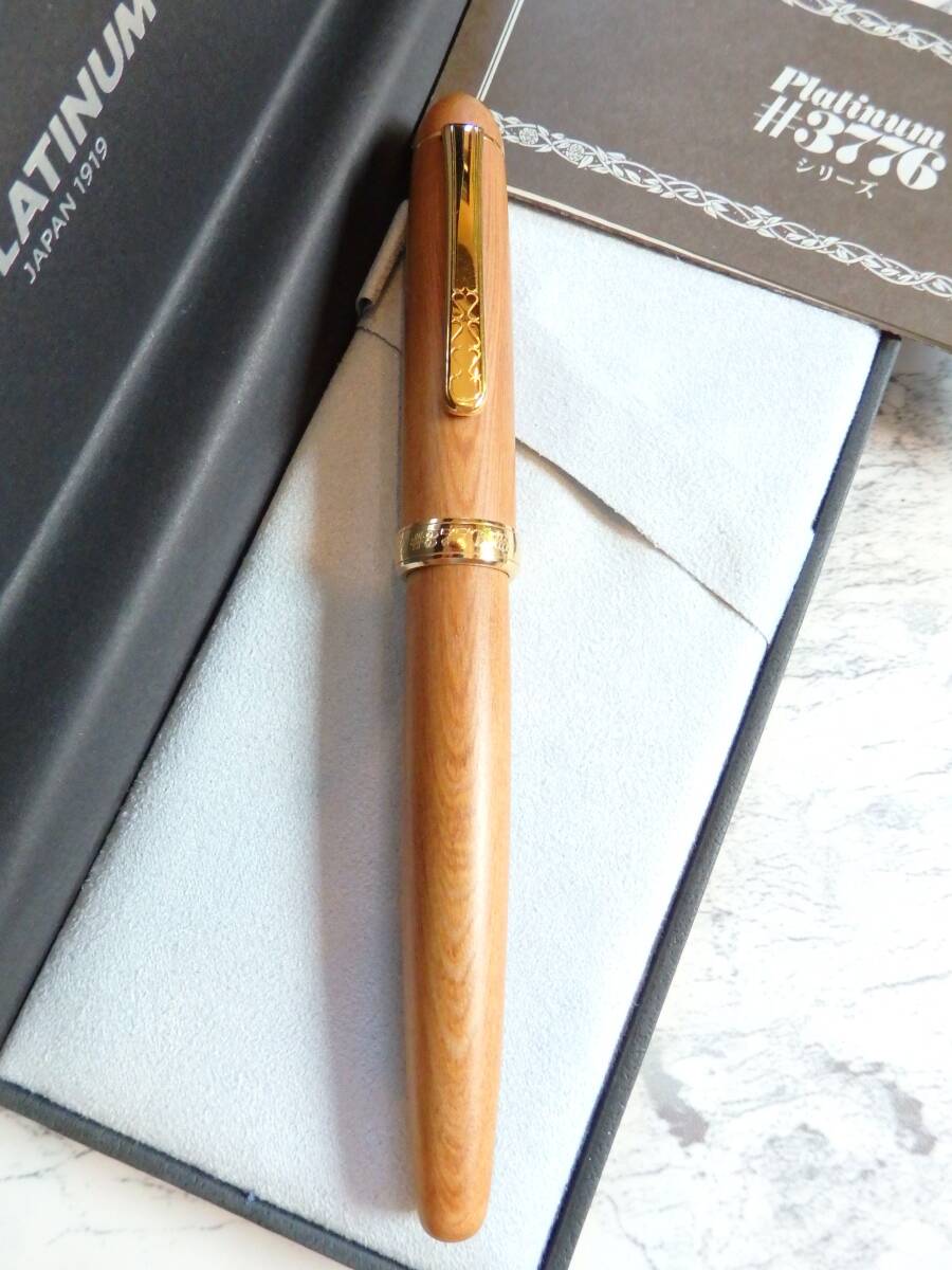 ◆【ほぼ未使用】【送料410円】プラチナ 屋久杉 万年筆 ペン先:14K585 M