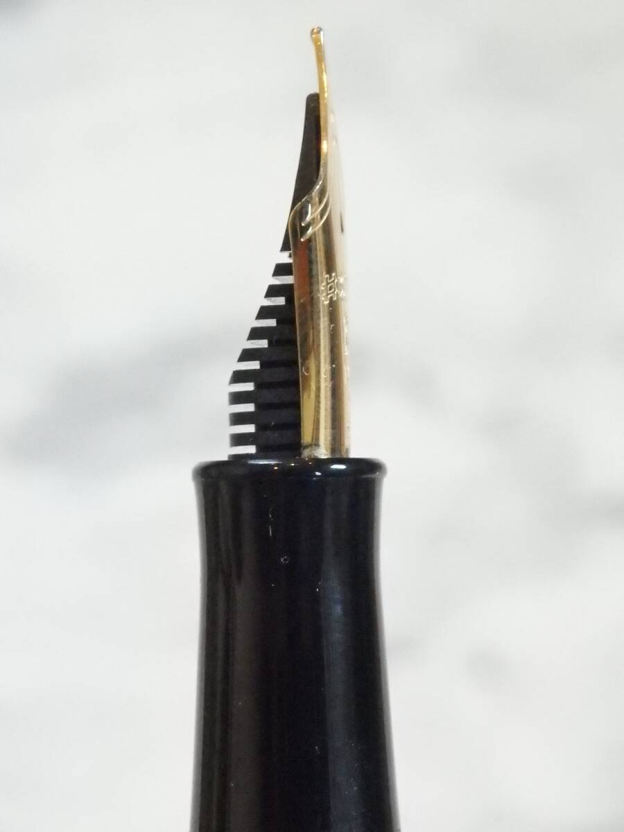 ◆インクが出ない場合:未使用・新品以外の中古万年筆は、前所有者の使用方法がわかりません。インクが出ないと言うクレームを言う方がたまにいます。インクの種類は様々です。顔料インクや古典インクのような乾燥後は水に溶けないインクを使用していた方もいます。インクが出ないのは、インクがペン芯内で乾燥して固着している場合がほとんどです。その場合、以下の方法で解決処理ください。