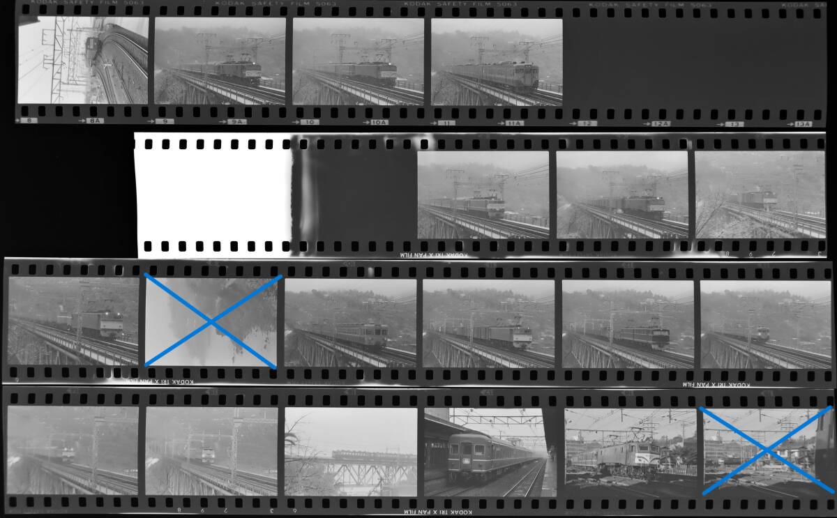 ★★35ミリネガフイルム (モノクロ) 南武線 旧型国電79系、東海道本線 EF58,EF60,EF65F,EF65P,EF66,EH10、14系、113,153,155系★★