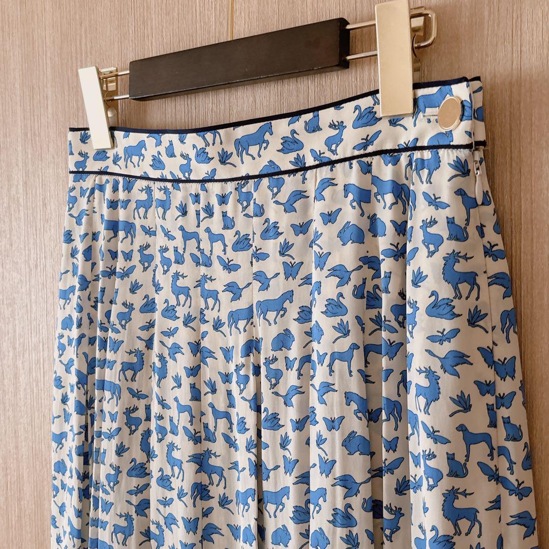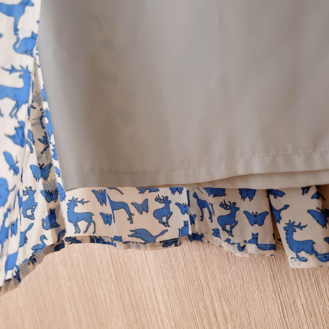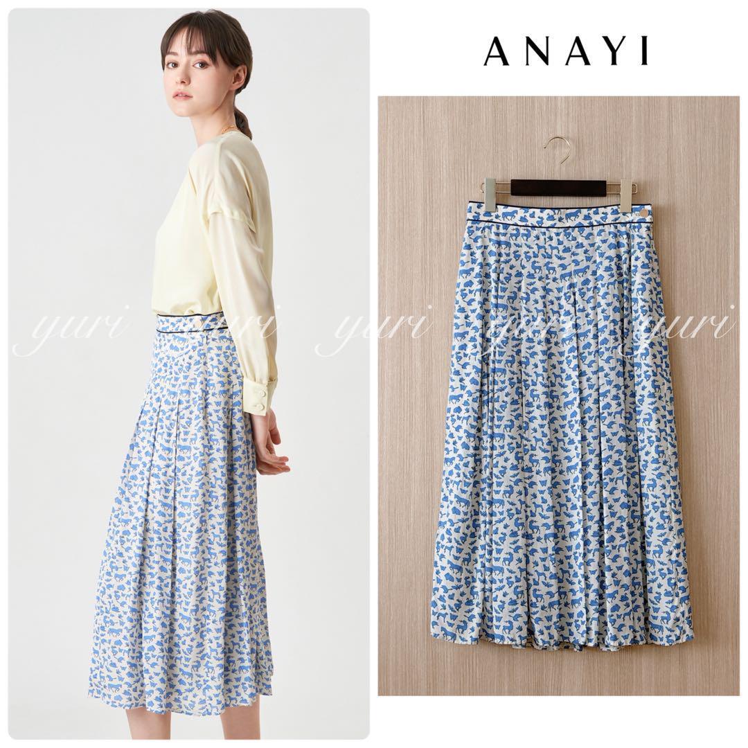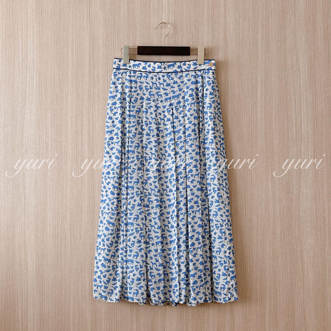【364】アナイ モチーフプリントタック スカート 白青 38