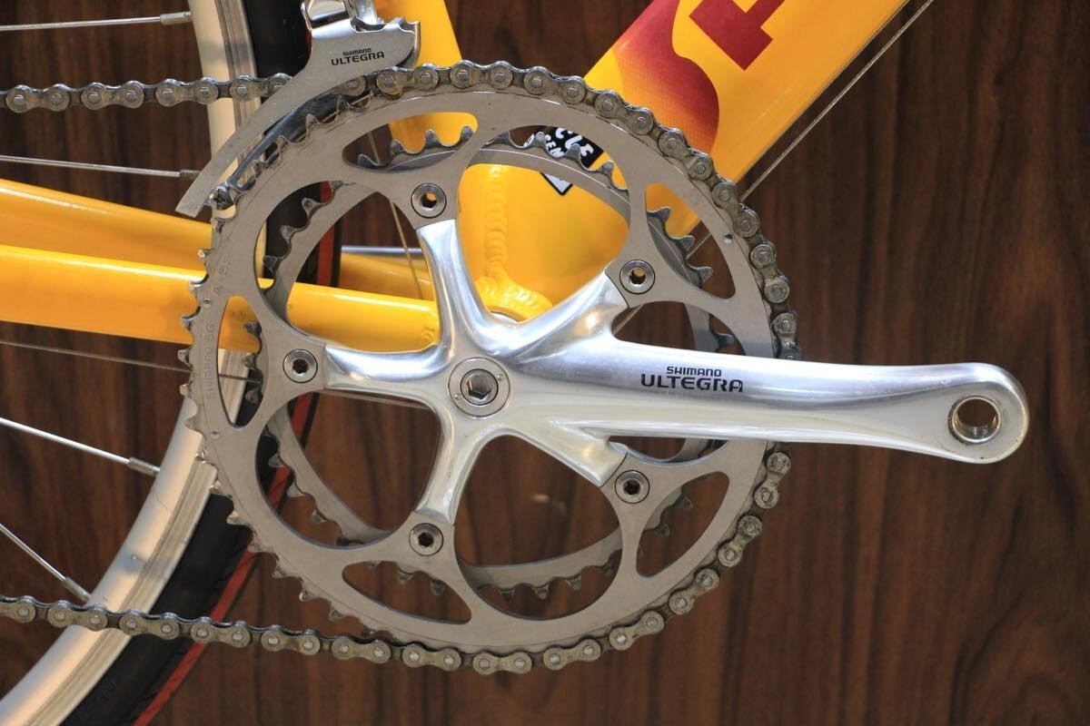 | 仕様 | 年式:2000 フレーム:アルミ フォーク:カーボン メインコンポ:SHIMANO ULTEGRA 6500 2X9S クランク:SHIMANO ULTEGRA FC 6500 170mm 53T;39T ホイール:ORIGINAL タイヤ:700 X 28C スプロケット:9S 12T;23T ハンドル幅:400mm ステム長:80mm サイズ:540 トップチューブ長(C-C):540mm (※ホリゾンタル換算値) シートチューブ長(C-T):540mm 適応身長:170cm?180cm程度 実測重量:9.2kg ※掲載画像状態 |