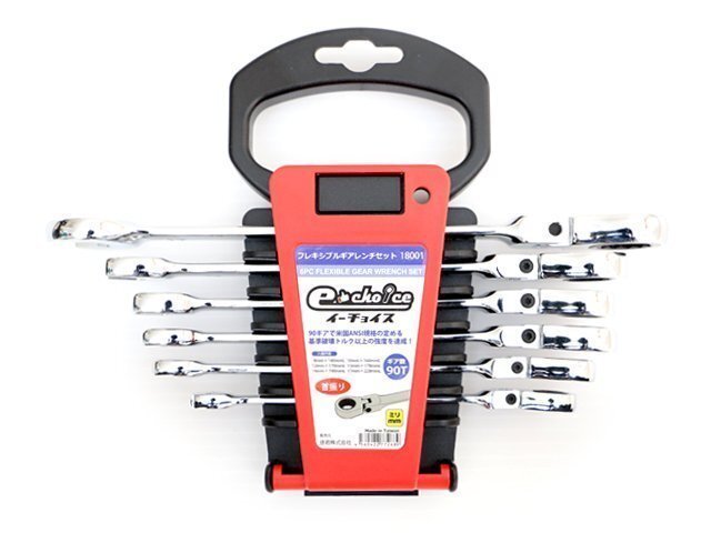 | 商品説明 | 便利なギアレンチ【イーチョイス】から90ギアで登場。 早回しには必須アイテムのギアレンチ トルクを掛け過ぎて内部のギアを破損してしまいがちです。 今回イーチョイスから発売されたレンチは本締めができるぐらいの強度です。 米国のANSIの定めた規格を上回る破壊実験をクリアー 規格トルク以上のスペックを持ち合わせており、信頼の台湾製ですので品質もお墨付きの6本セットでコストパフォーマンスも良し! ※強度テストでは本締め出来る範囲をクリアーしていますが、過度にトルクを掛けると破損の恐れがございます。 あくまでも、規格トルク以上のスペックを持ち合わせたギアレンチとお考え下さい。 |