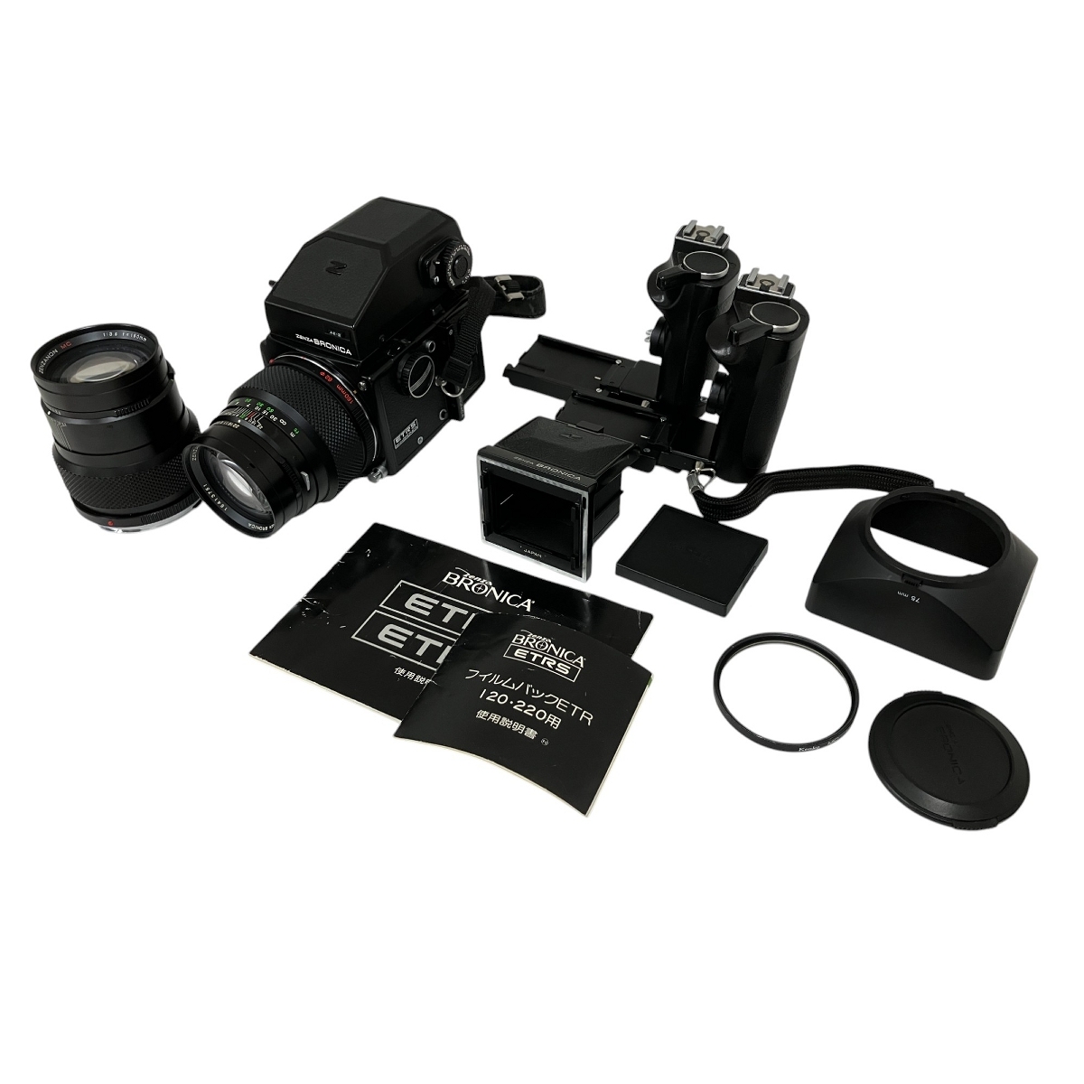 | ZENZA BRONICA AE-II ETRS 中判カメラ ボディ ZENZANON MC 150mm F3.5 レンズ2点 グリップ2点 ゼンザブロニカ ジャンク O10327523 |