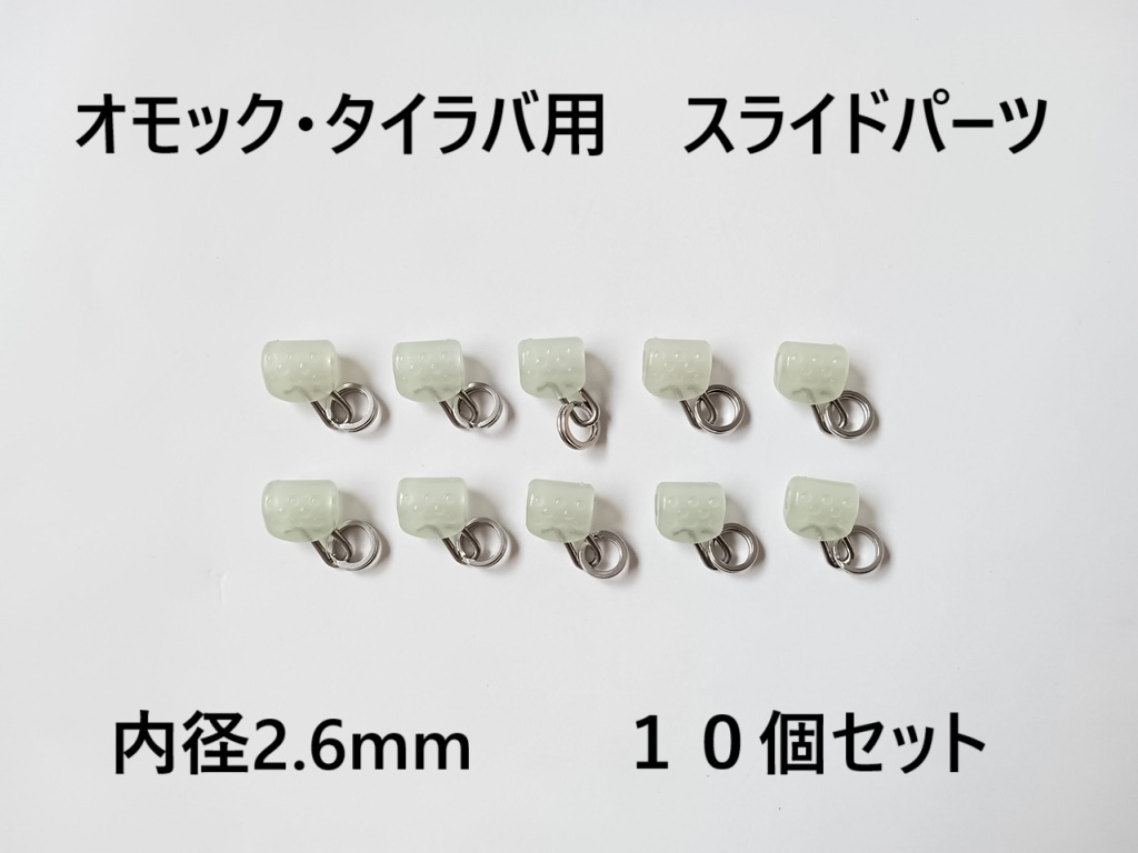 スライドパーツ オモック タイラバ用 スプリットリング付き グローホワイト 夜光 蓄光 10個 改良版 内径2.6mm ビンビンスイッチ対応 鯛ラバ