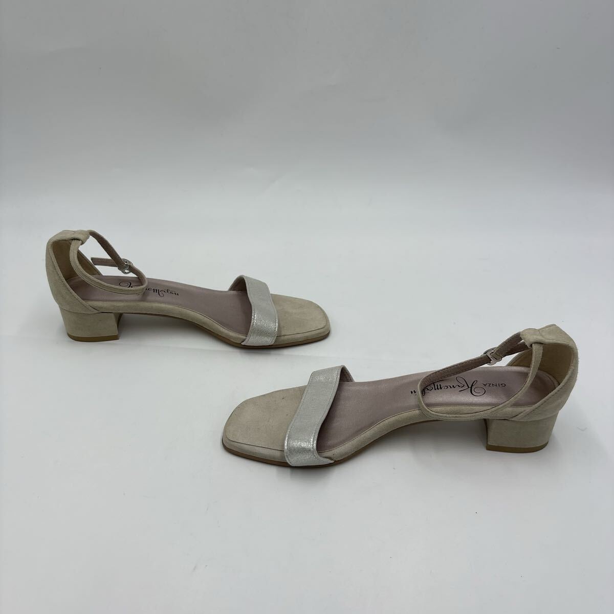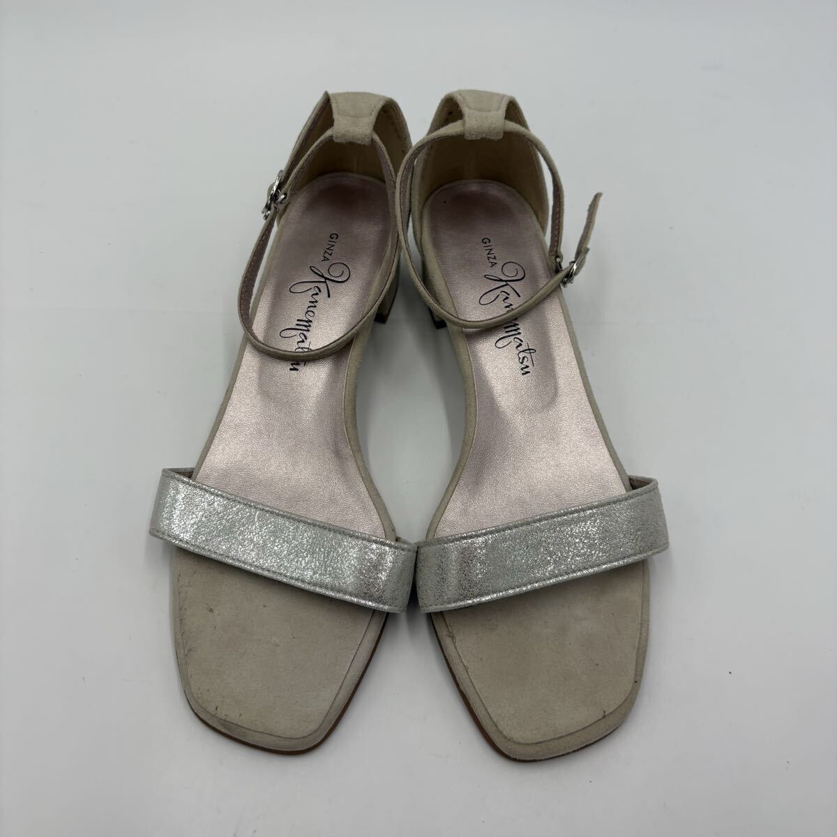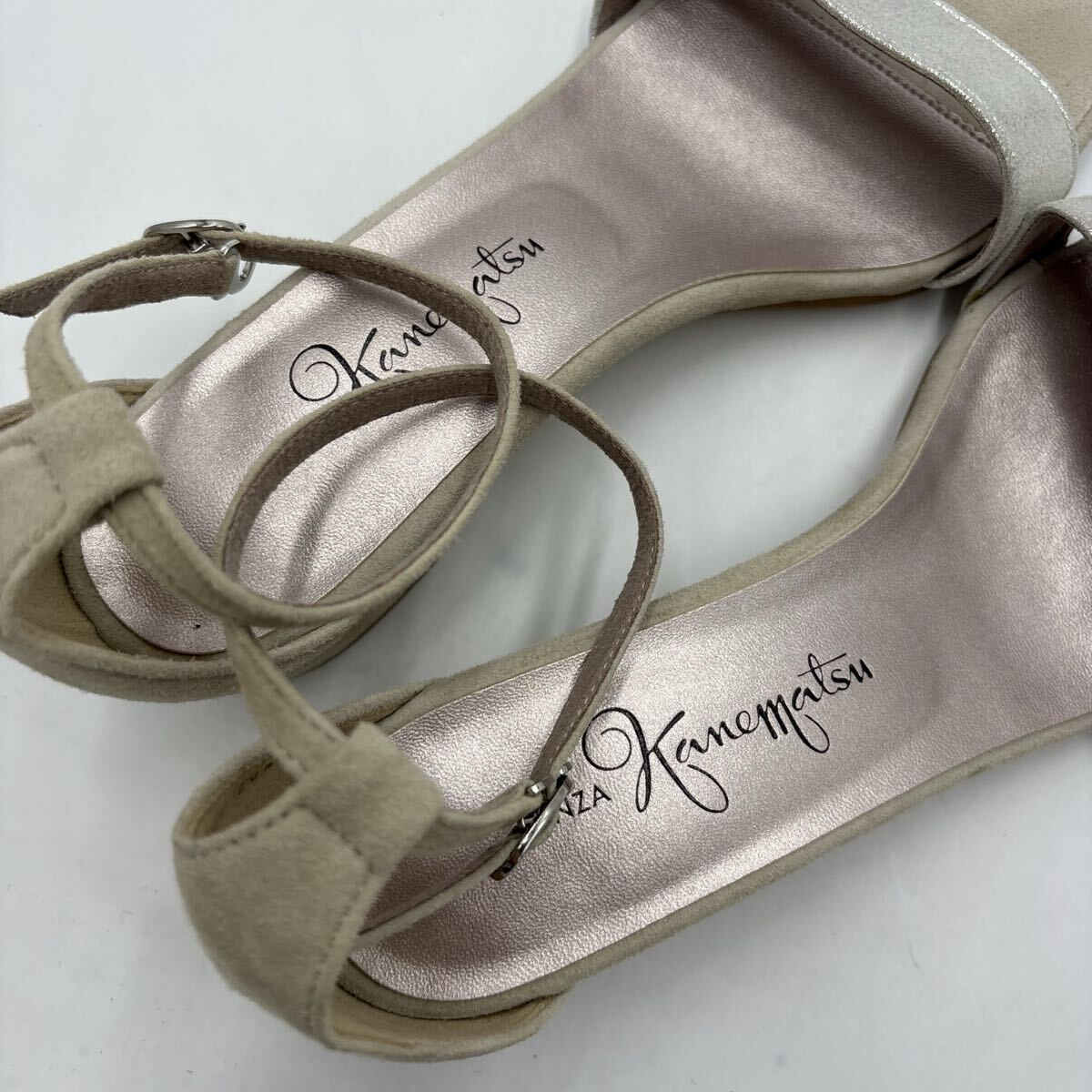 O ■ 日本製 '洗練されたデザイン' GINZA KANEMATSU 銀座かねまつ アンクル ストラップ オープントゥ パンプス サンダル 23.5cm D 婦人靴