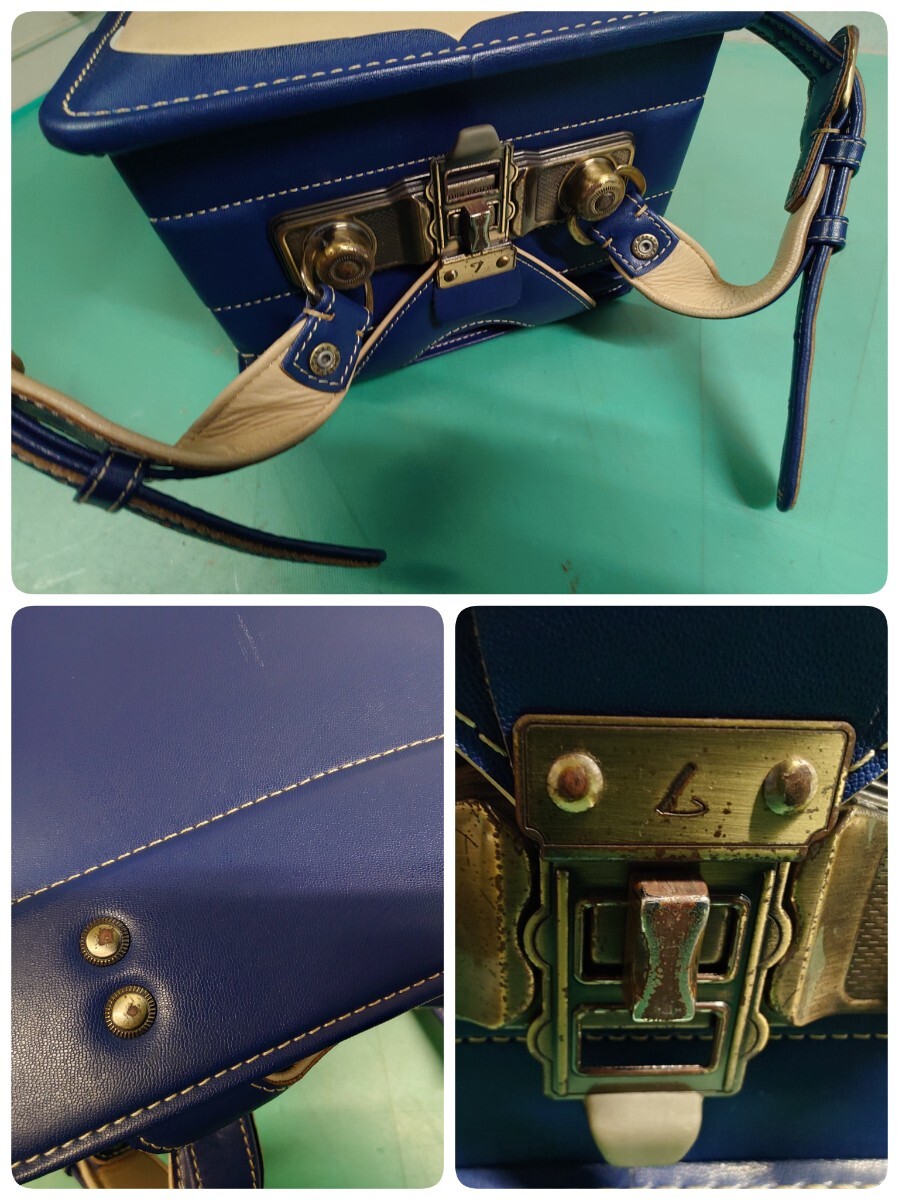 金具部分に錆、ベルト部分や表面等には皺、多少の型崩れがみられますが、中古品の範囲内かとおもいます。