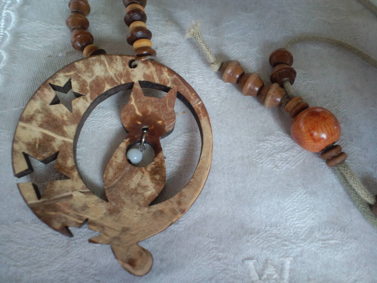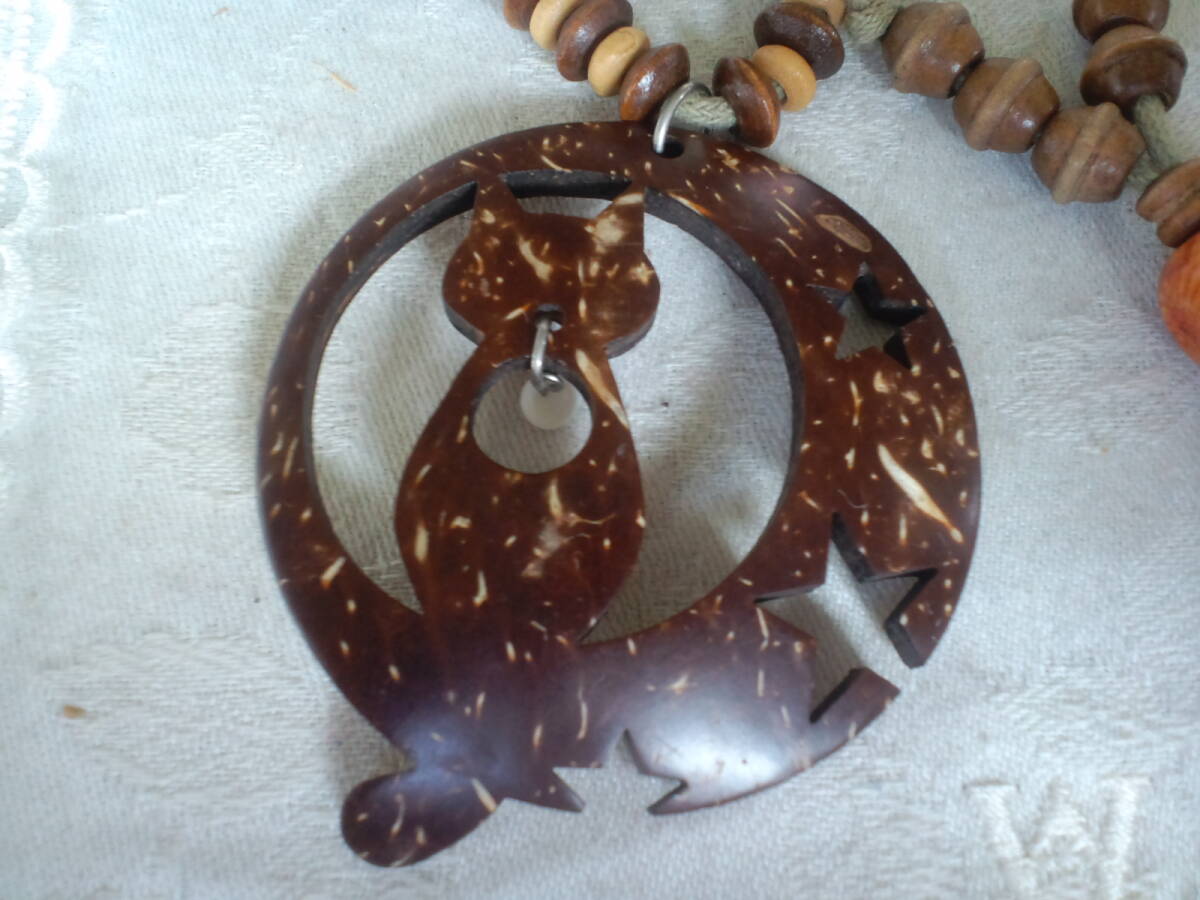 未使用☆HIKOSEN CARA  ネックレス ペンダント ココナッツ 天然素材 飛行船 猫 ねこ ひこうせん 送料185円
