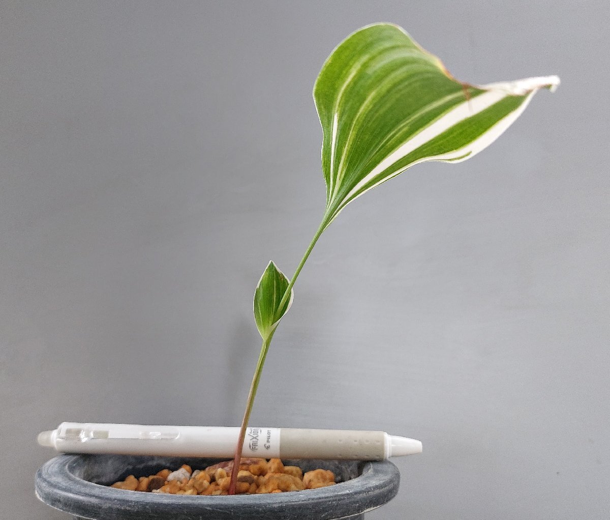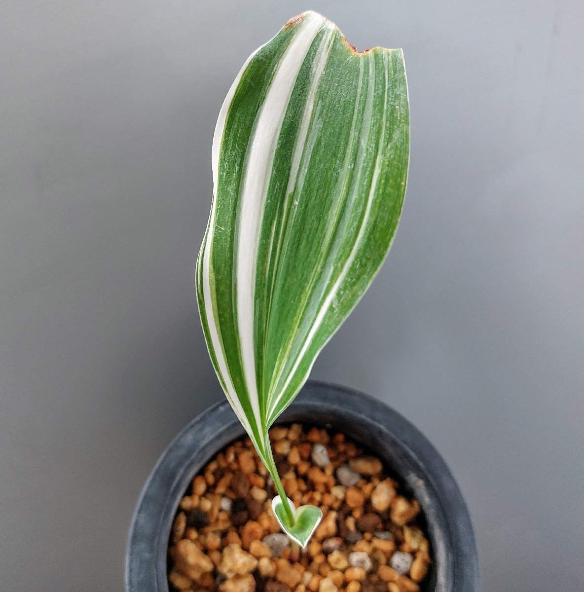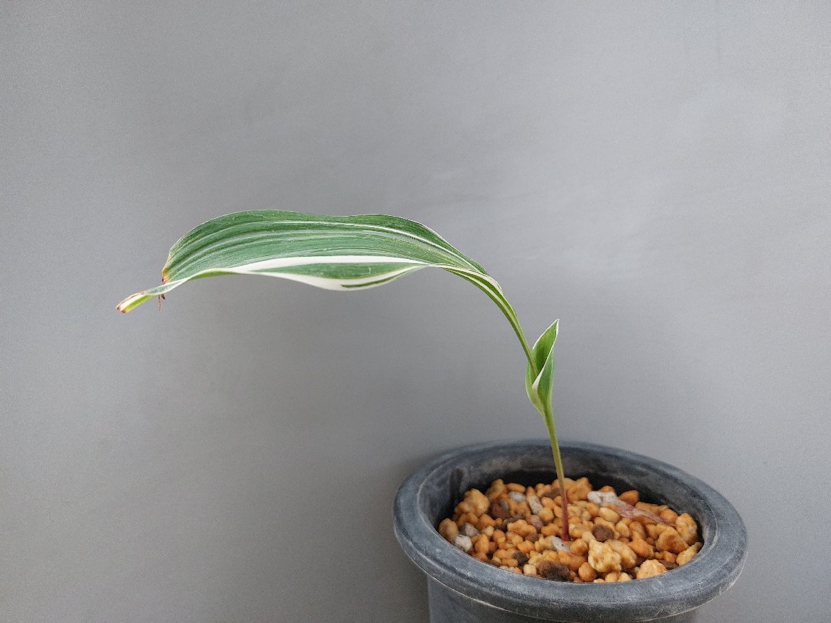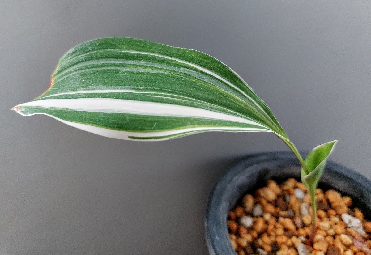 キジカクシ科の野生種の日本スズランの白縞の珍品です。