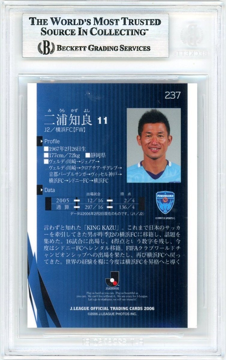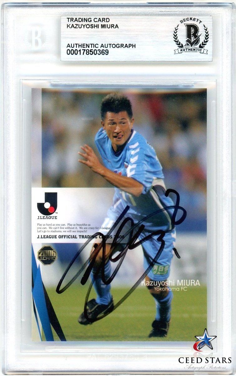 【CS】三浦知良 直筆 サイン 入り 2006年 横浜FC プレミアム Jリーグ カード ベケット社鑑定 UVホルダー入り シードスターズ 三笘薫 堂安律