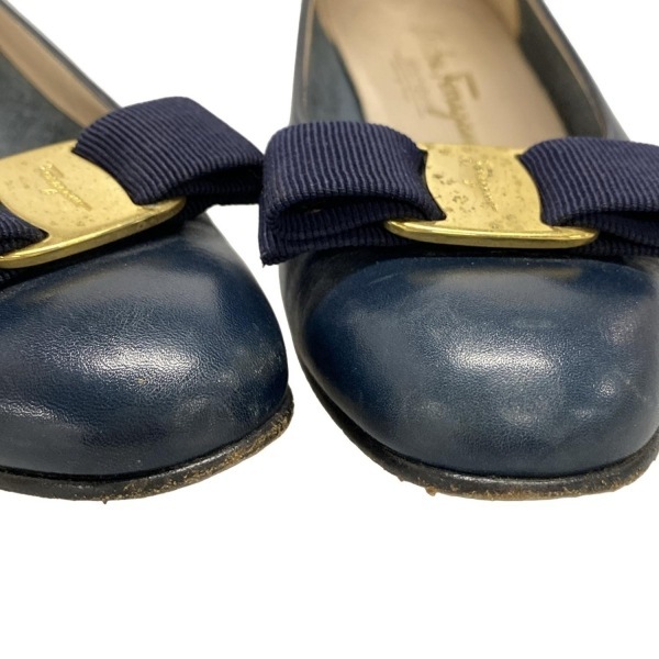 サルバトーレフェラガモ FERRAGAMO/SalvatoreFerragamo パンプス 5 C - レザー ダークネイビー レディース ヴァラ 靴