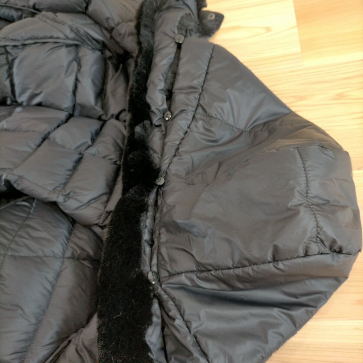 フードの毛皮は、ボタンで取り外し可能(写真5)