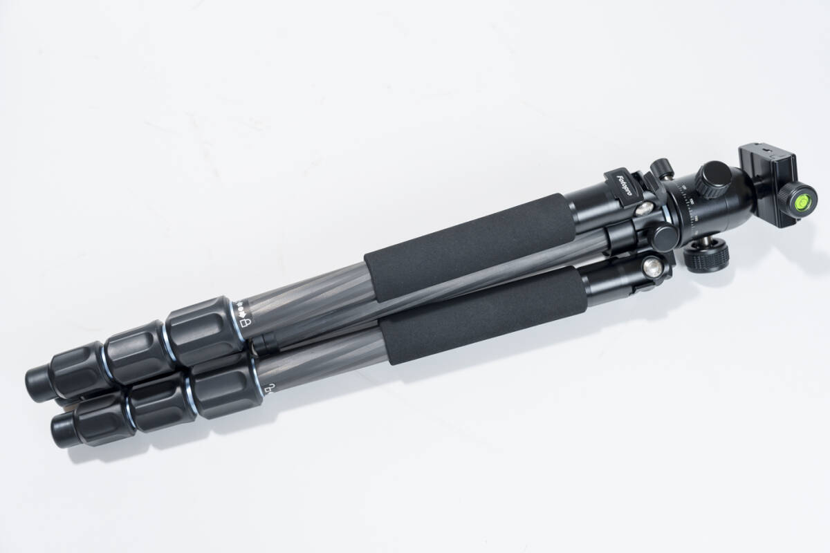 とても軽く扱いやすい4段のカーボン三脚です。
