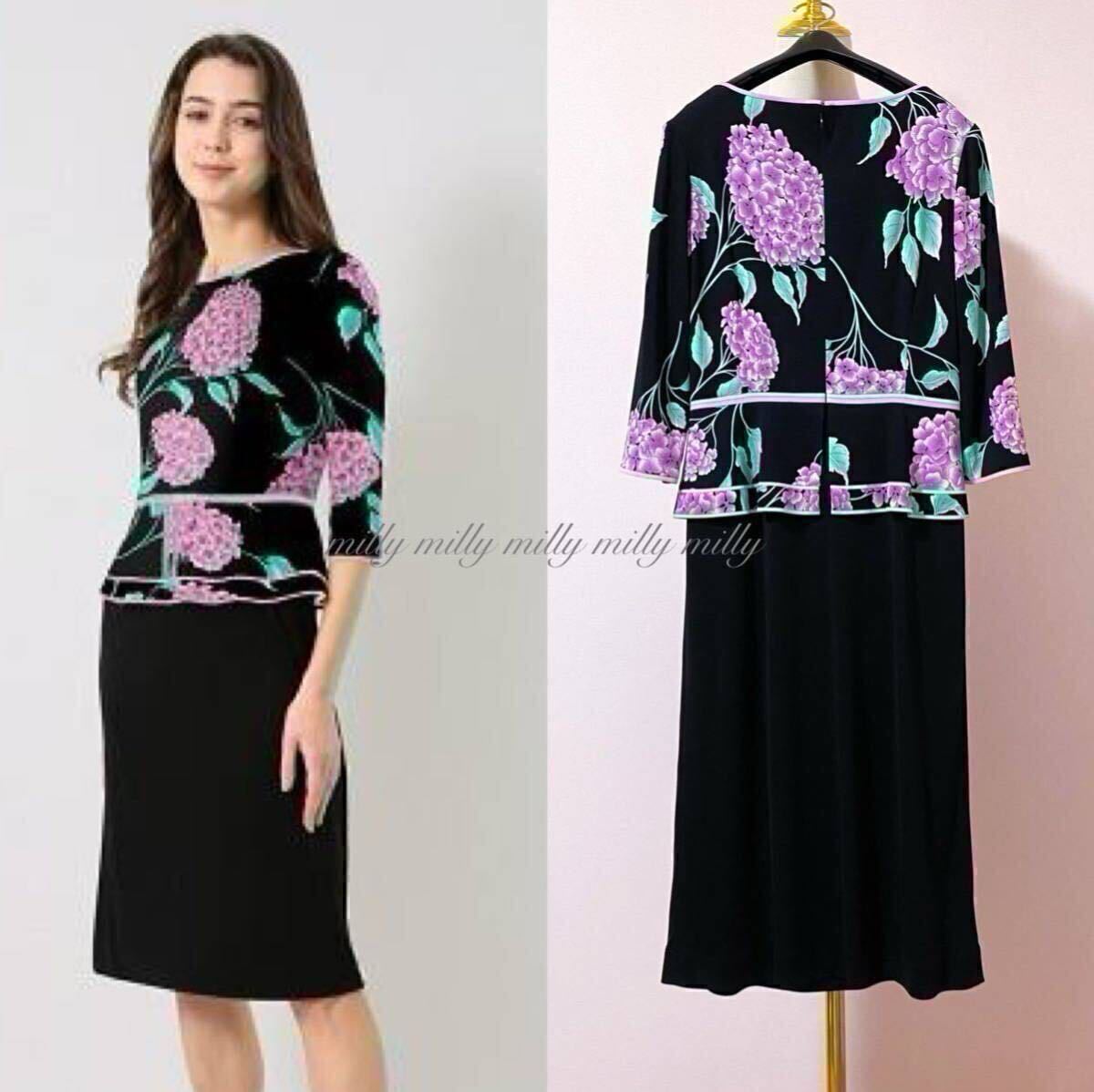 繊細なタッチで描かれたフラワーアートが美しいエレガントなワンピース。滑らかでドレープ感のある生地で仕立て、ソフトフィットでストレッチの効いた優しい着心地も魅力です。ペプラムが腰回りのラインをより美しく見せ、メリハリのある美しいシルエットを作り出します。ロゴマークメタルパーツがアクセントのリボンがワンポイントに。一枚で主役になる魅力的なワンピースは様々なシーンで幅広く活躍してくれます。