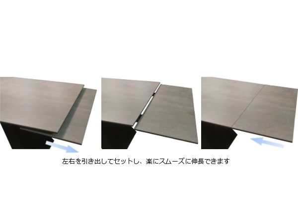 抜群の耐久性とメンテナンス性に優れたセラミックを天板に使用したモダンなダイニングテーブル。スムーズに伸縮していただけるエクステンション式の天板で来客時も安心。セラミックは耐熱性がありキズや汚れにも強く、普段のお手入れは水拭きはもちろん、アルコール消毒もOK。清潔にお使いいただけます。