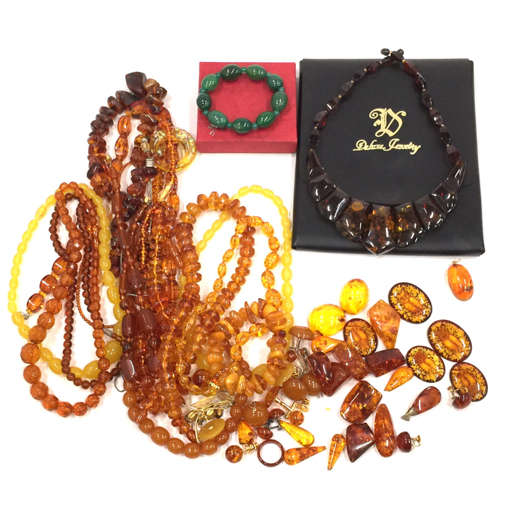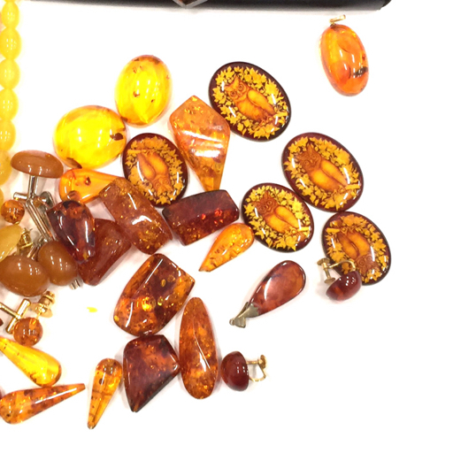 | 1円 琥珀 コハク ペンダントトップ 金具 K18 含む ネックレス イヤリング 他 アクセサリー 総重量約0.87kg A20715 |