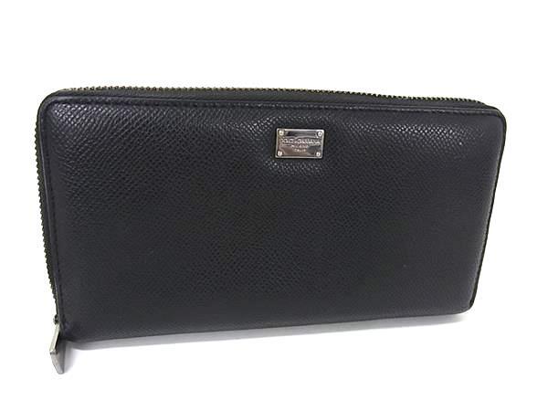 1円 ■美品■ DOLCE&GABBANA ドルチェ&ガッバーナ レザー ラウンドファスナー 長財布 ウォレット 札入れ 小銭入れ ブラック系 FP7557