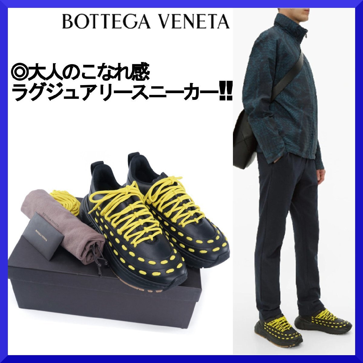 【参考価格17万】BOTTGA VENETA イタリア製 LACE-UP SPEEDSTER本革レザースニーカー/ブラック×イエロー/メンズ/【サイズ:41】/新品