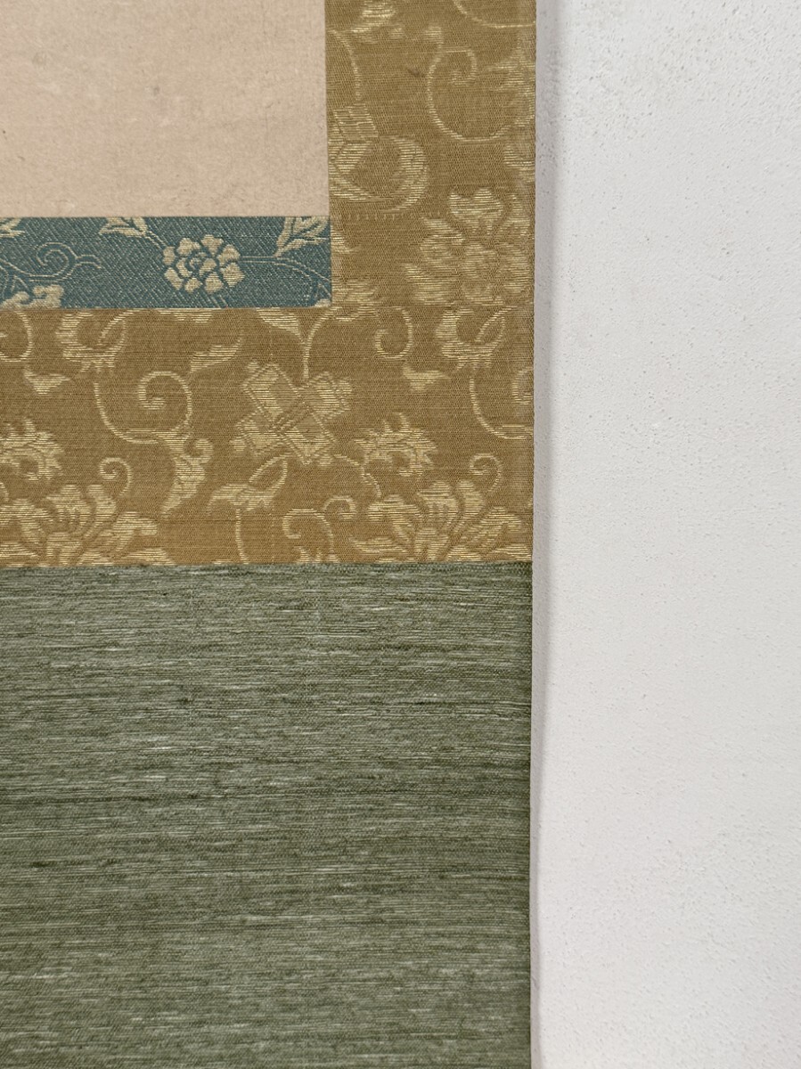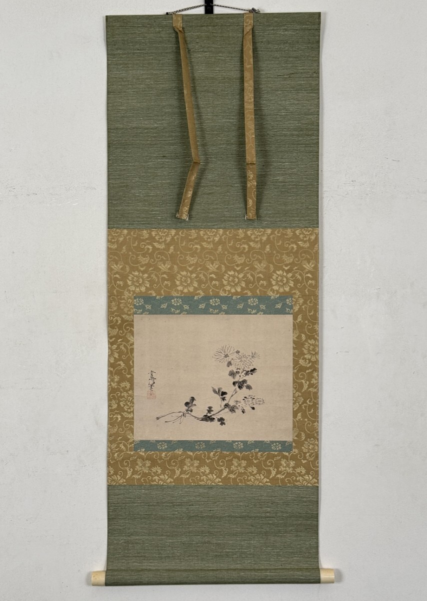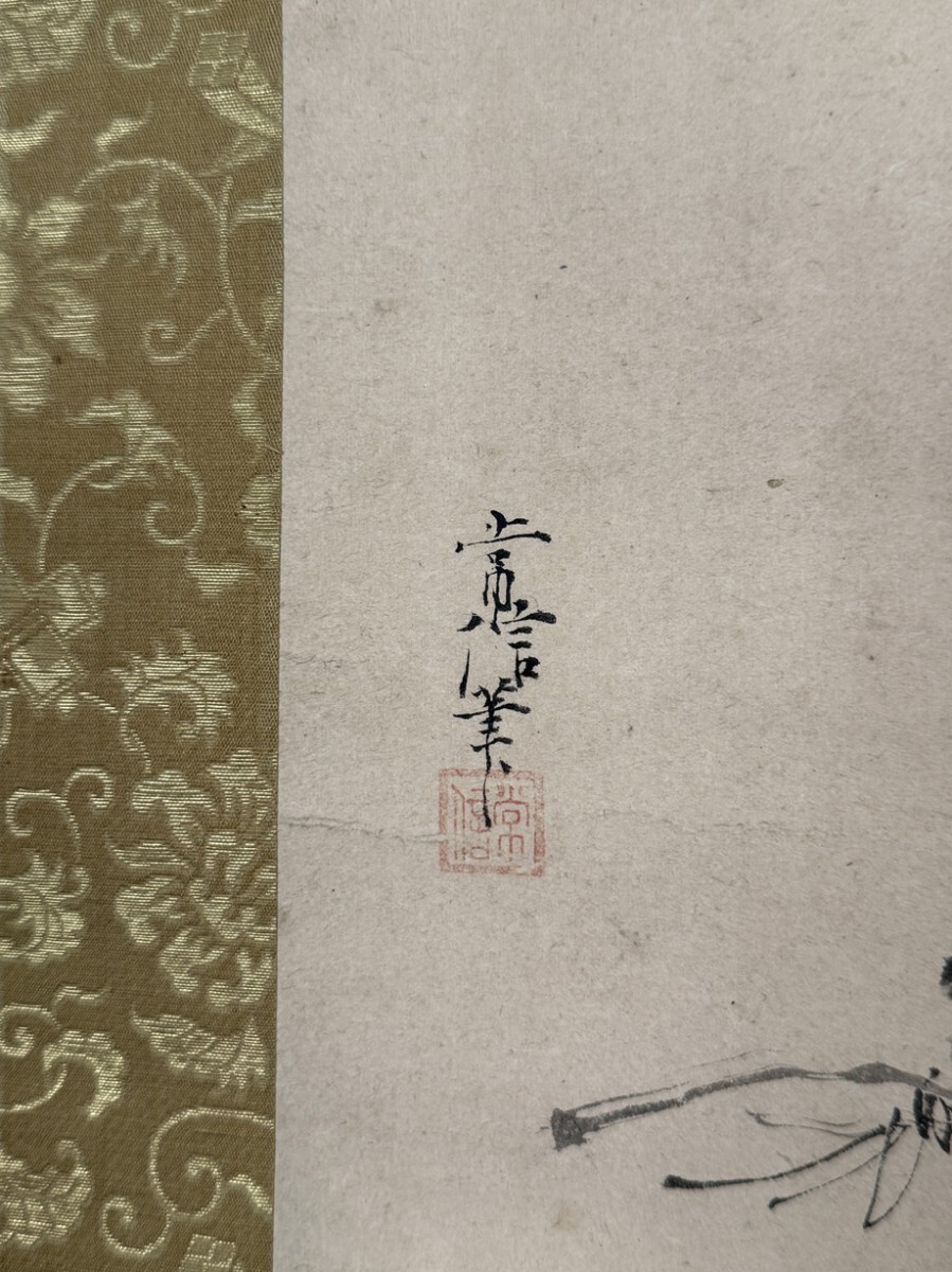 総丈サイズ…横 37 × 縦 98.5 cm 紙本水墨・箱入 状態…本紙微少オレ 【印刷ではありません】 【真作】 狩野常信 江戸前期の狩野派の絵師。幼名は三位。通称は右近・中務卿。号は養朴・古川等。木挽町狩野家の祖、尚信の子。木挽町狩野家二代。父の歿後、叔父探幽にも画を学び、幕府の奥絵師として活躍。のち法印に叙せられた。古画学習に努め、鑑定した古画の控え等が『常信縮図』として残る。正徳3年(1713)歿、78歳。 |