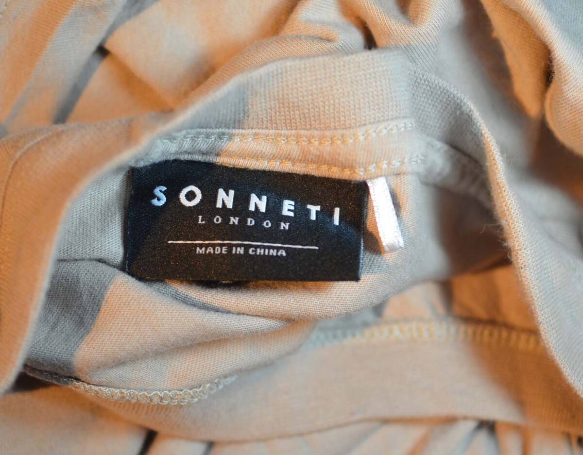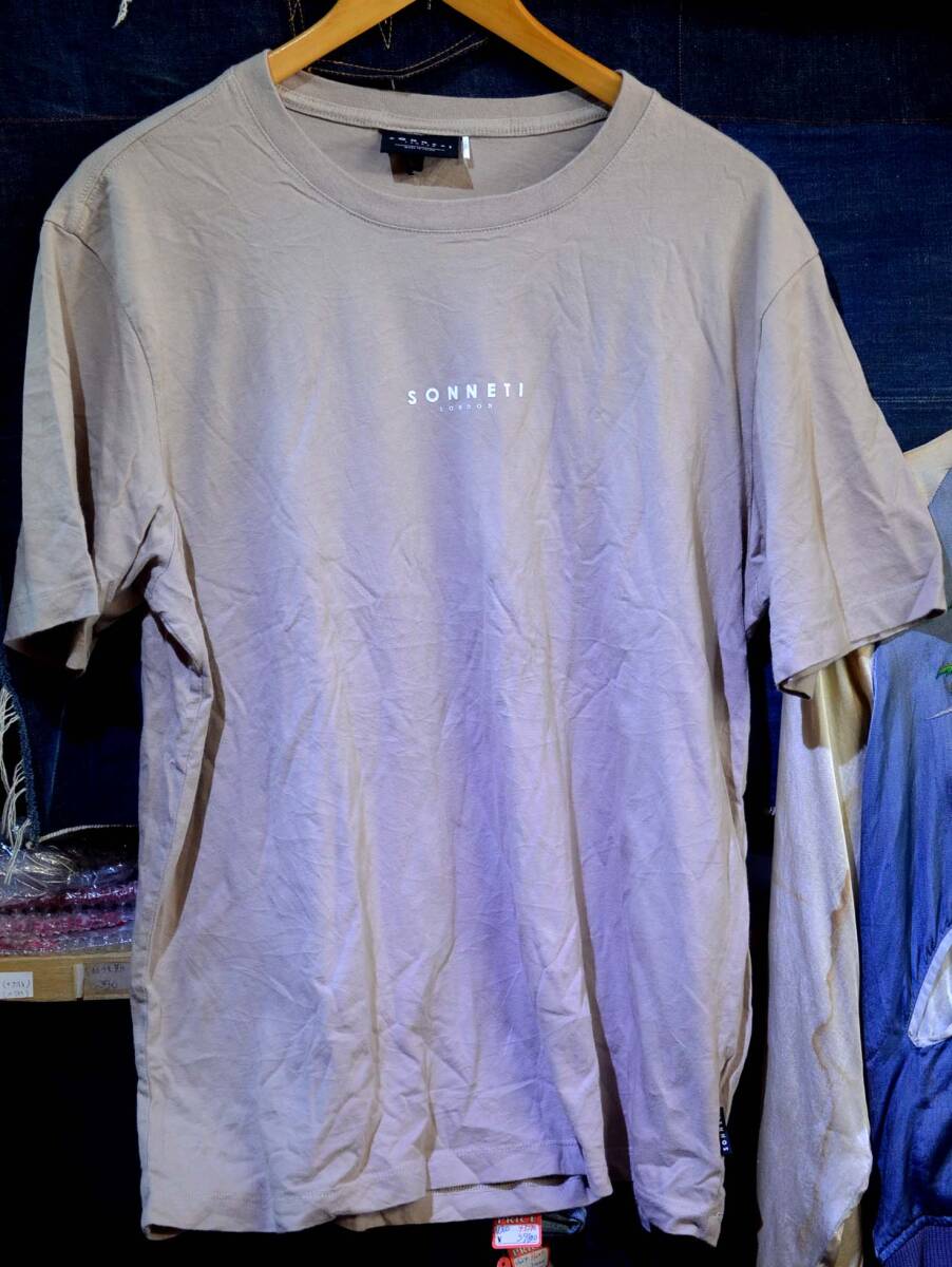 イギリス発高級ブランド、SONNETI LONDONのTシャツです。プレミアムコットン混紡生地で作られた多用途のTシャツで、生地は非常になめらかで高級感があります。一度洗ってあり、しわなどありますが、未使用の新品です。ご希望により、こねこ便420(3000円まで補償付き)も対応します。
