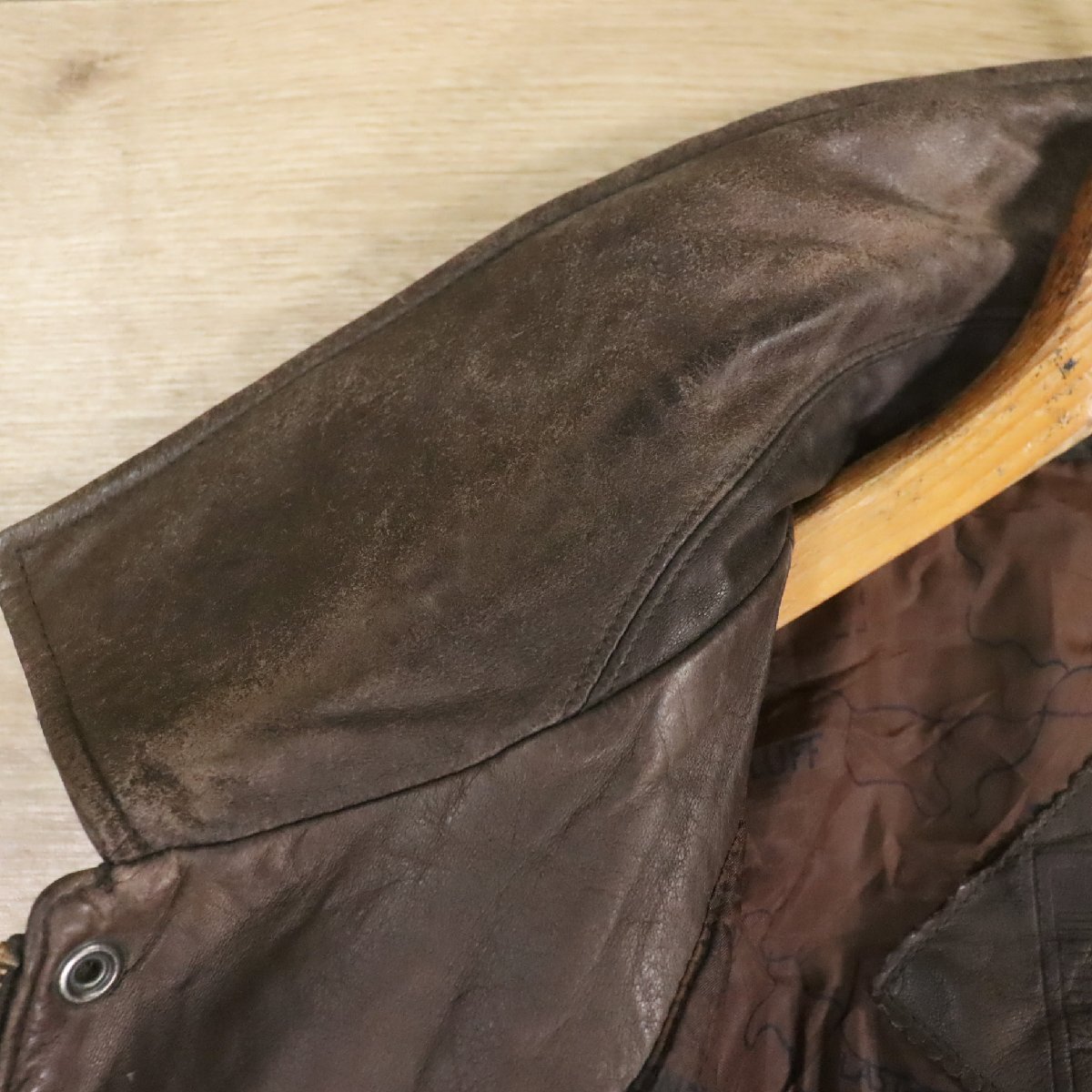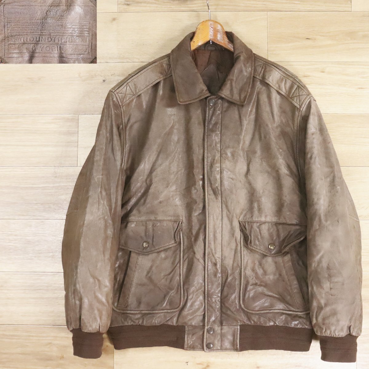 Z7T/Y7.18-2 アメリカ古着 ROUNDTREE & YORKE レザーフライトジャケット A-2 G-1 本革 レザージャケット 革ジャン ブラウン L