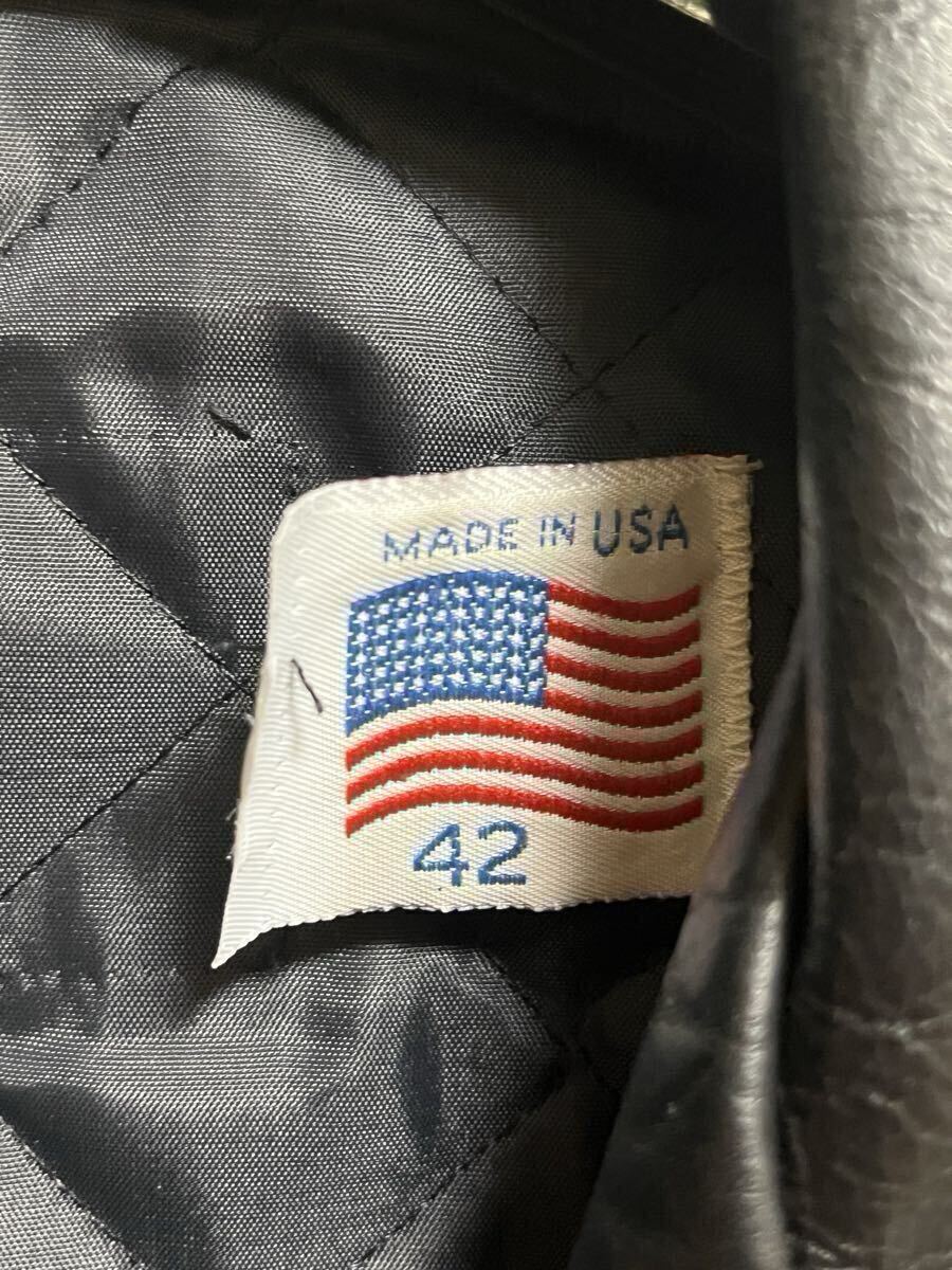 ブランド名 Schott・表記サイズ 42・肩幅 51cm・身幅 61cm・前丈 66cm・後ろ丈 63.5cmです。ブランドのタグが欠損しています。その点を除けば、とても状態が良いです。