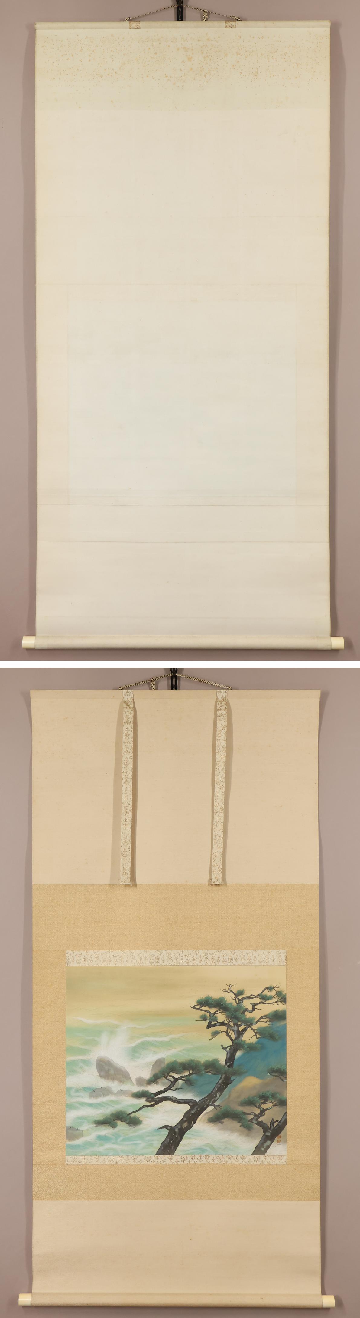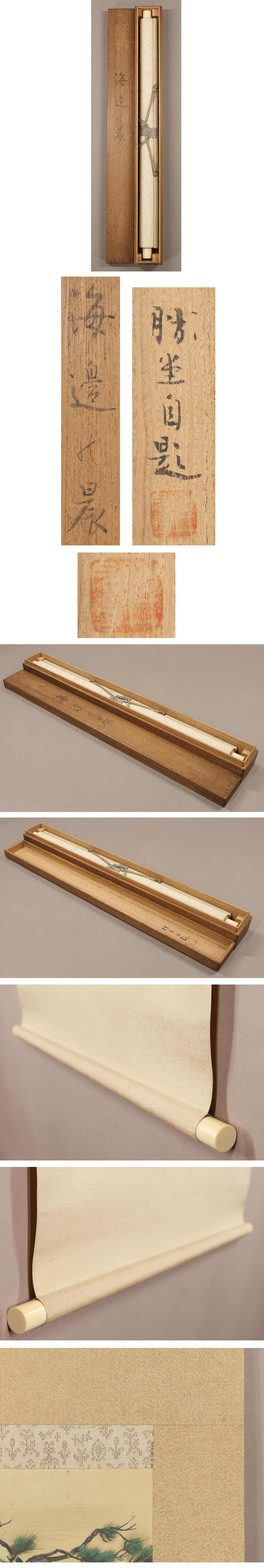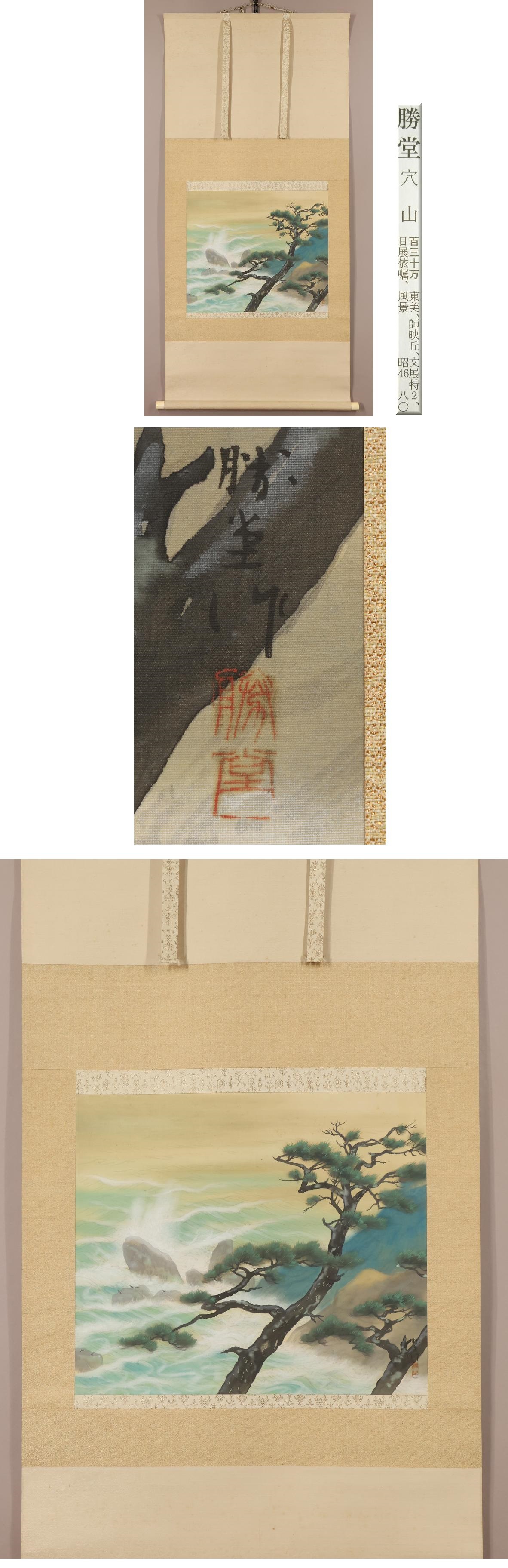 【真作】穴山勝堂◆海邊の晨◆共箱◆山梨県◆肉筆◆絹本◆掛軸◆w826